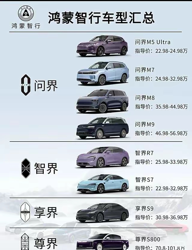 华为新能源“五界三境”已渐成矩阵,分别是鸿蒙智行的问界、智界、享界、尊界和尚界,乾崑智驾的启境、奕境和华境。其中,界系尊界和尚界刚刚起步,三境则全是新产品。