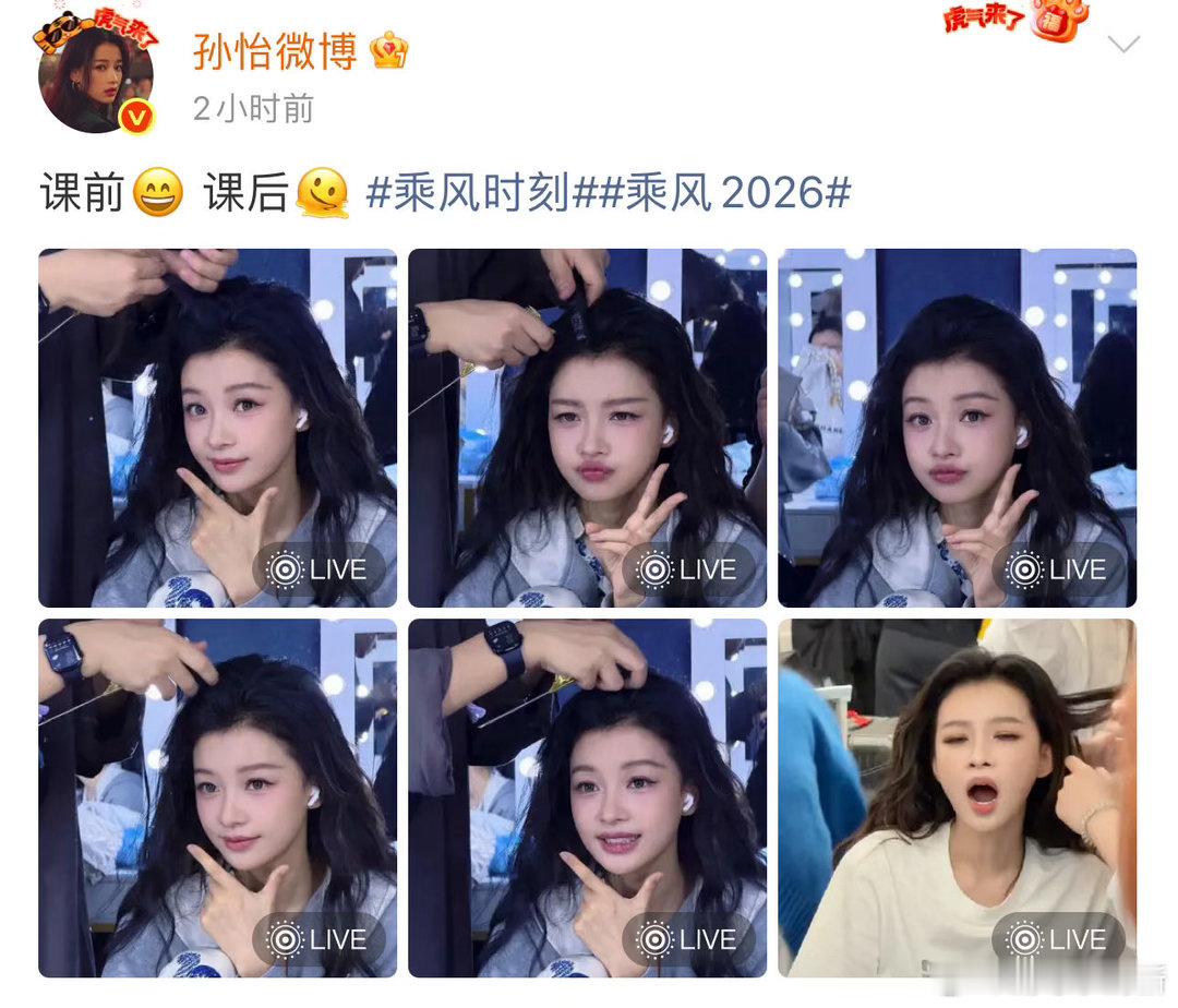 孙怡课前课后的live孙怡课前课后状态 课前孙怡:头发蓬松、妆容完整、眼神有光。课后孙怡:头发塌了、口红没了、眼神空了。这组图应该叫《一堂课能带走什么》——带走了一个人的精气神。乘风2026