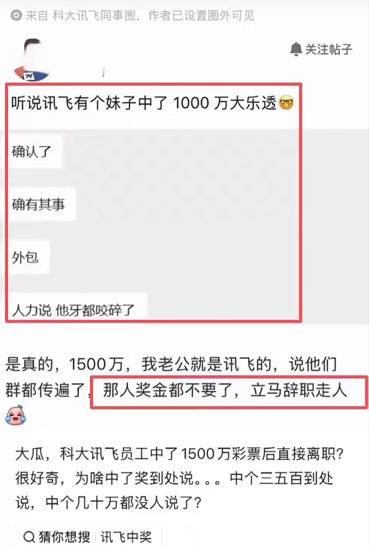 科大讯飞回应网传员工中1500万看这回应,感觉不像真的