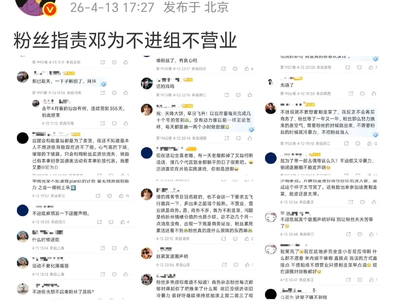 看吧看吧,之前粉丝要求高,不让进组。真没组进了,又逼问为什么不进组明星要真啥事都