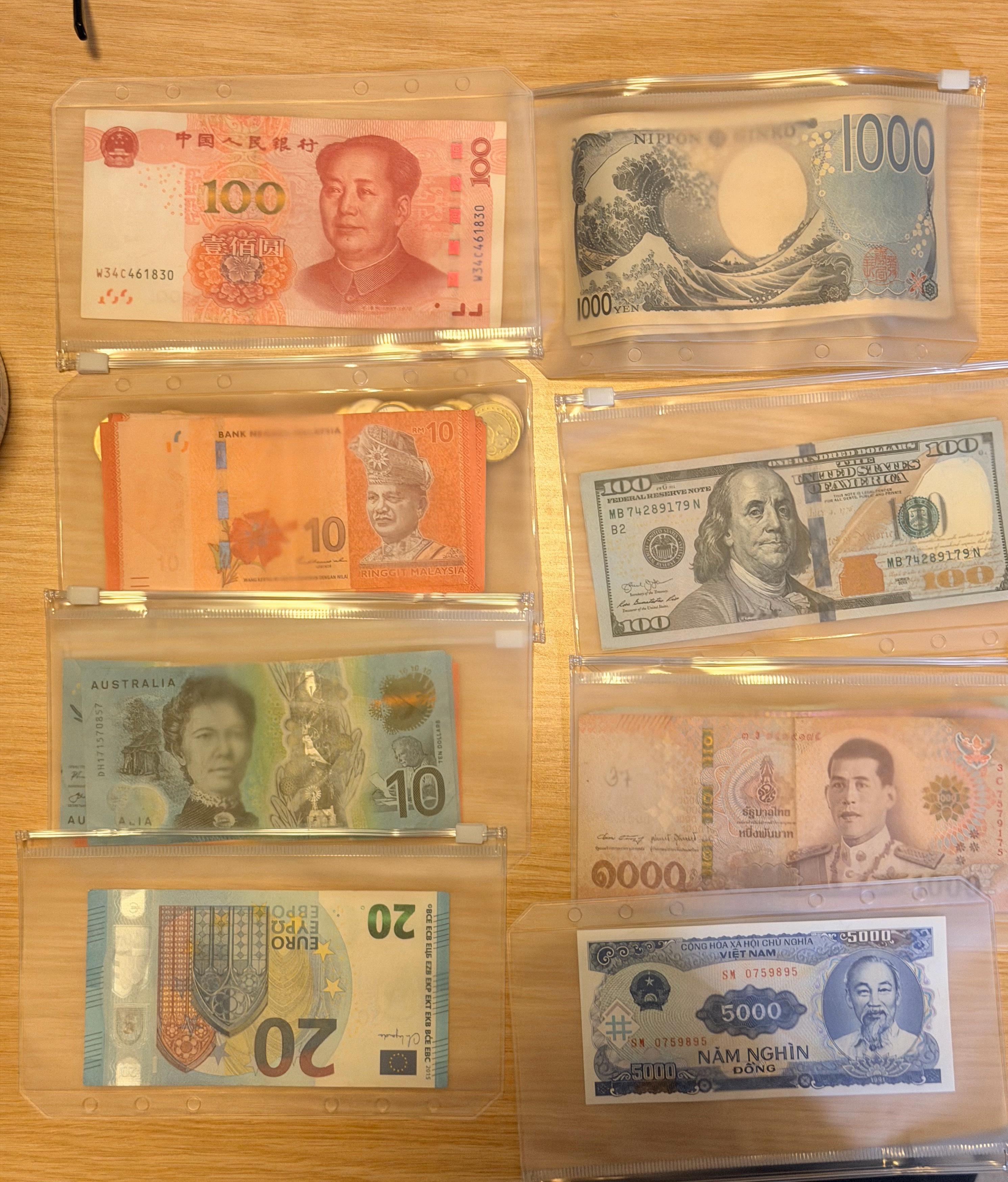 我把这几年出国旅游剩下的货币搞了一个本子收藏起来,你们能认出哪些国家