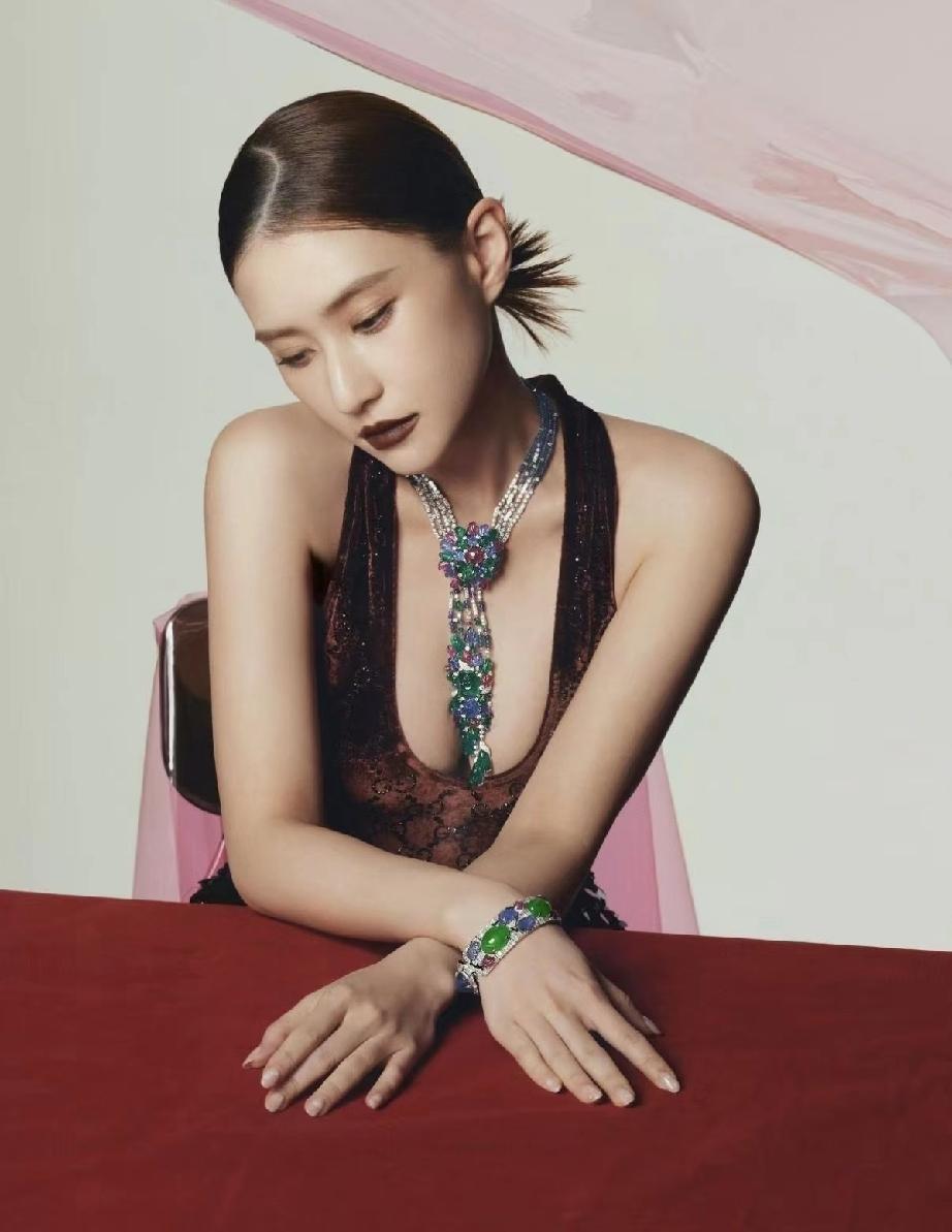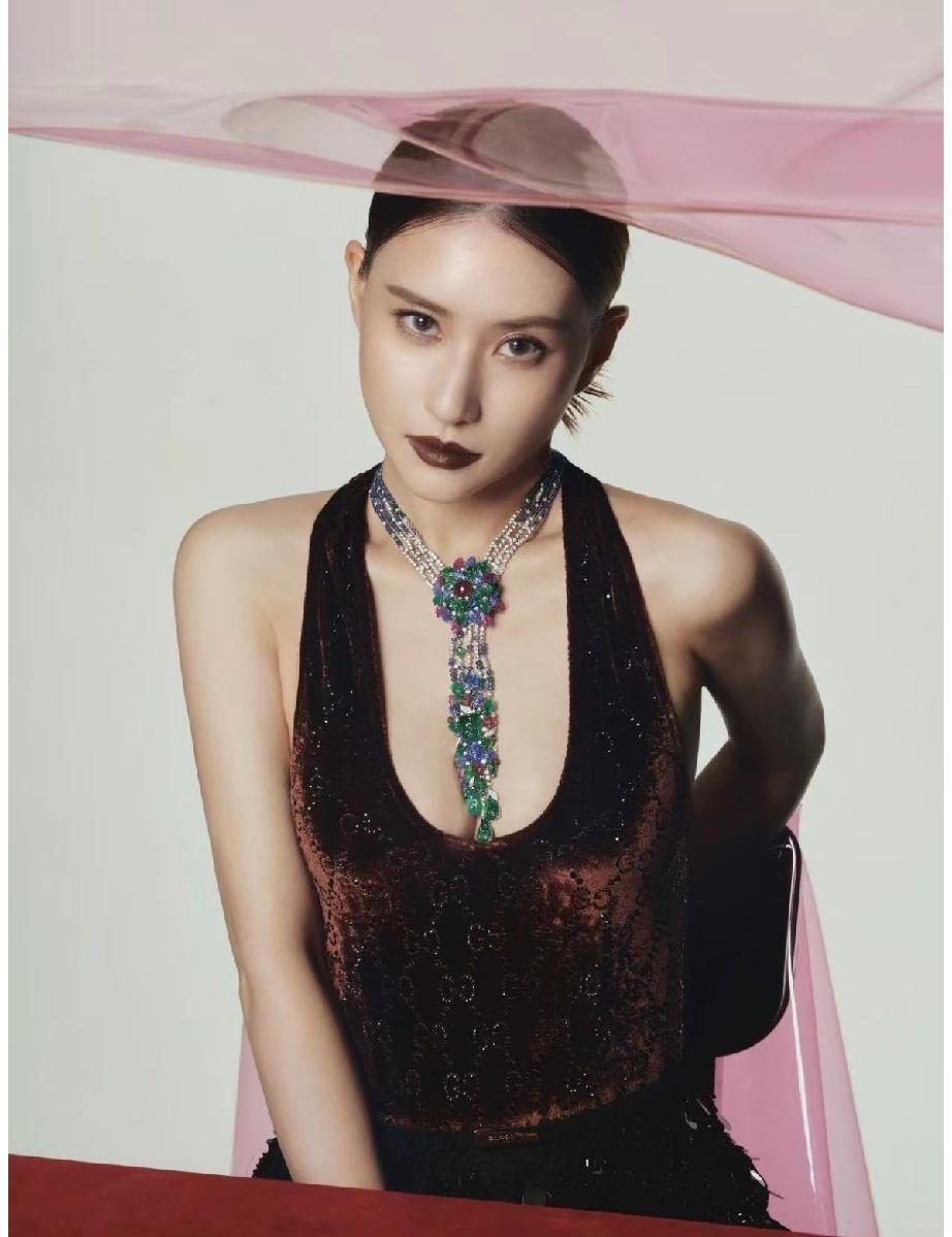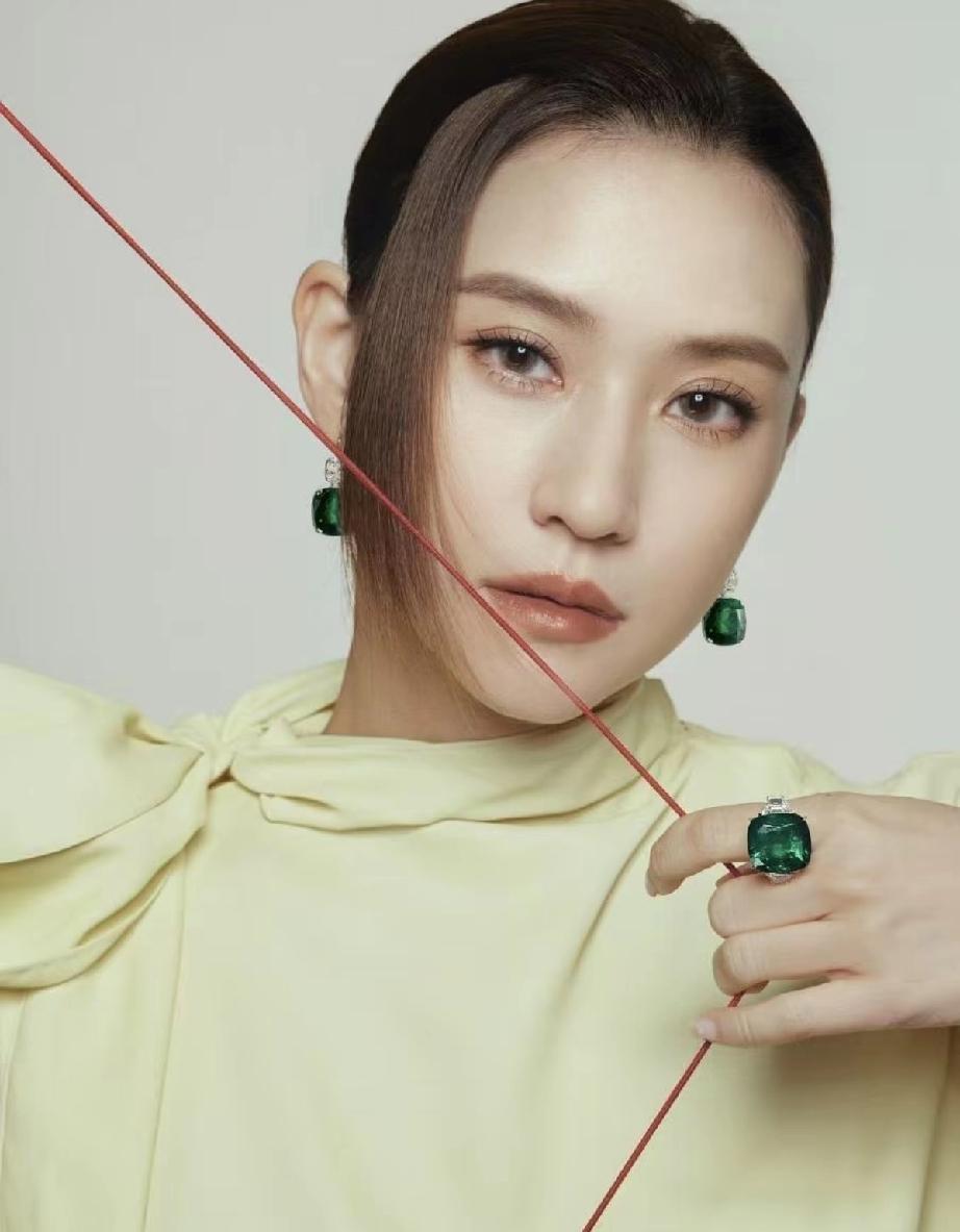 她还戴了祖母绿的项链,显得贵气又温柔。