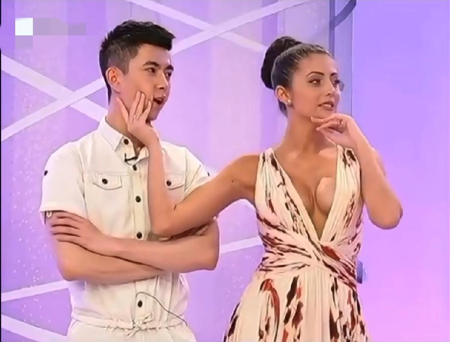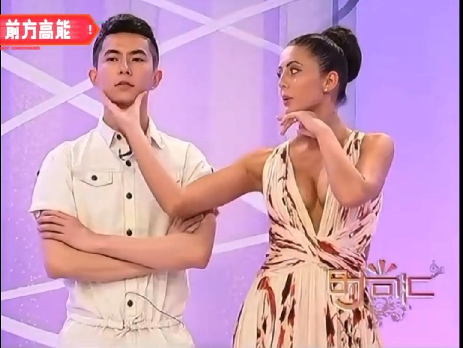 当小姐姐握住他的下巴时,萌萌害羞了。主持人都发现了,说他不好意思。