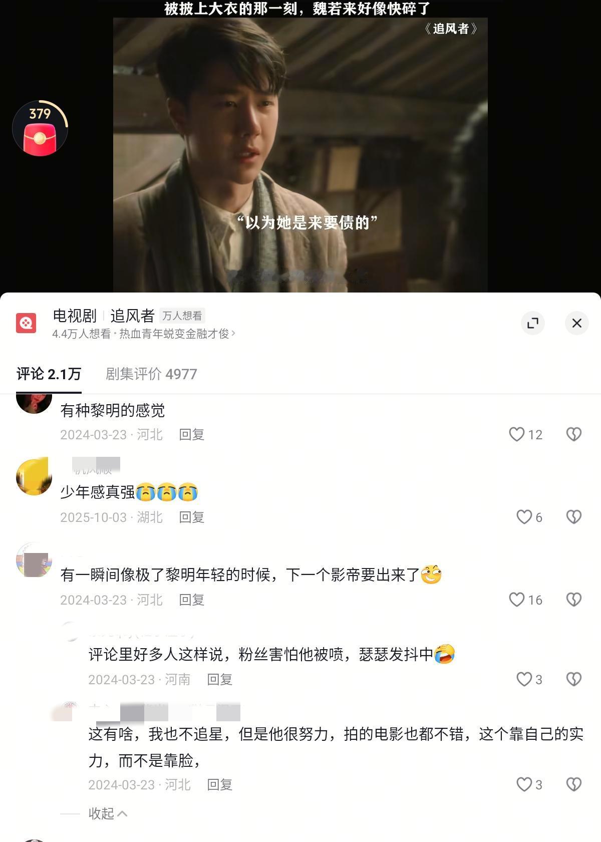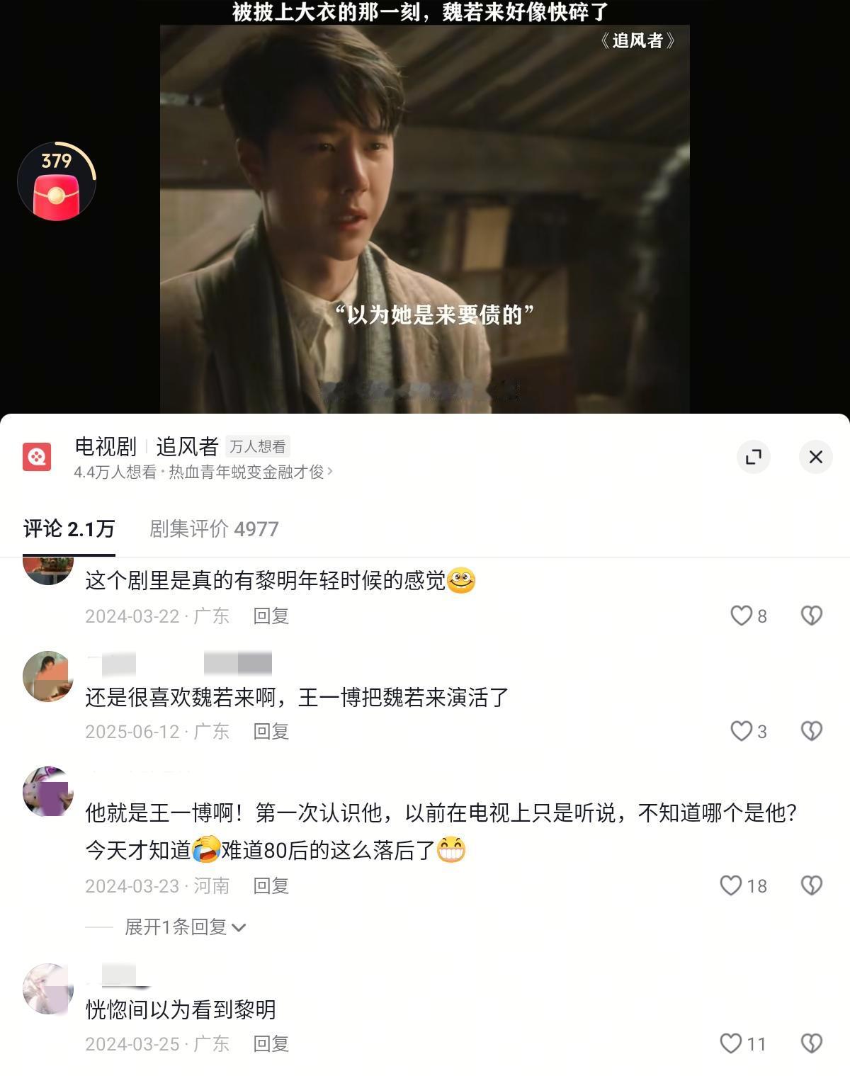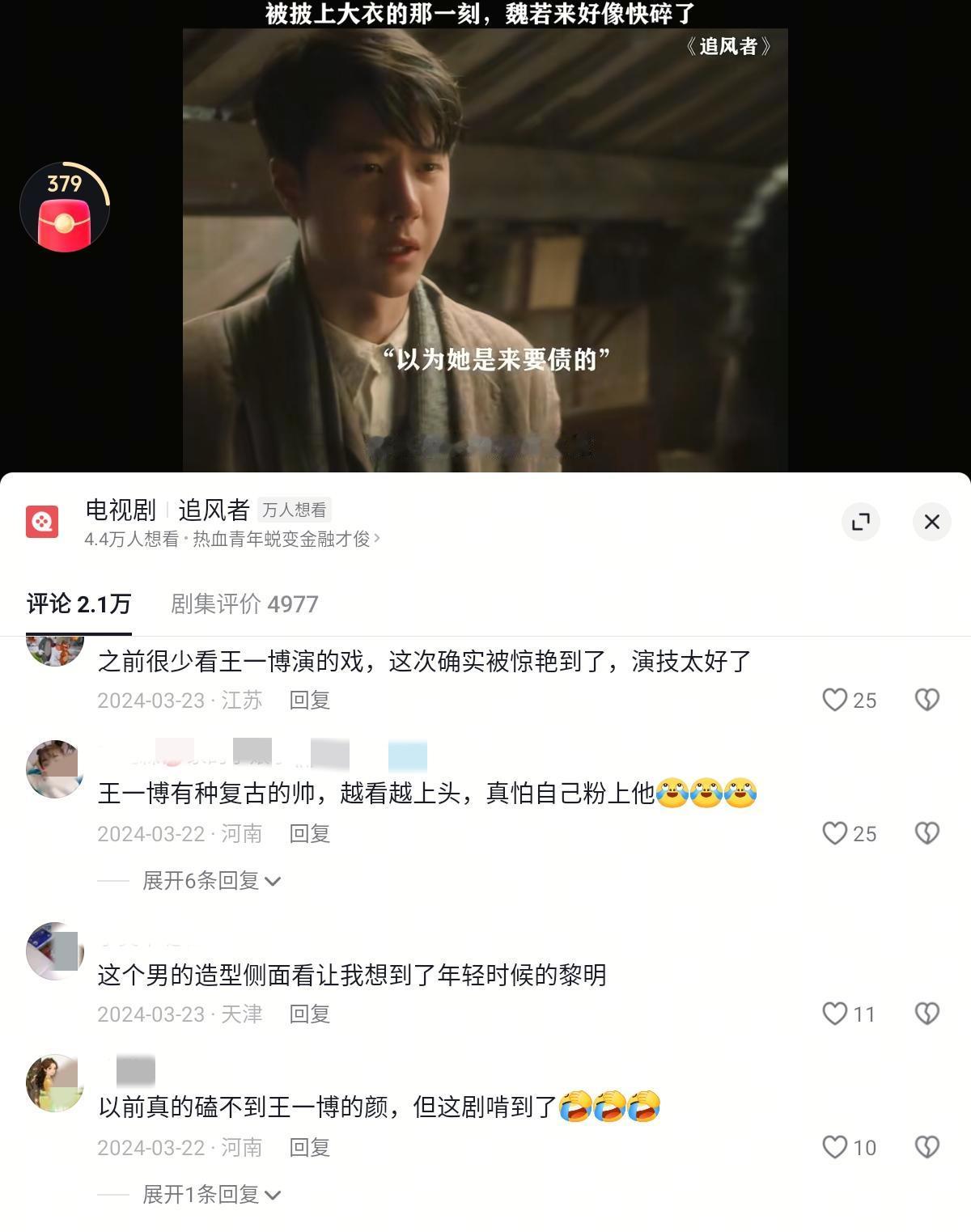 偶然刷到一条娱乐号发的追风者视频,58万高赞。一看是2024年3月21日开播那天晚上发的。这么高赞,可见当时热播的盛况。