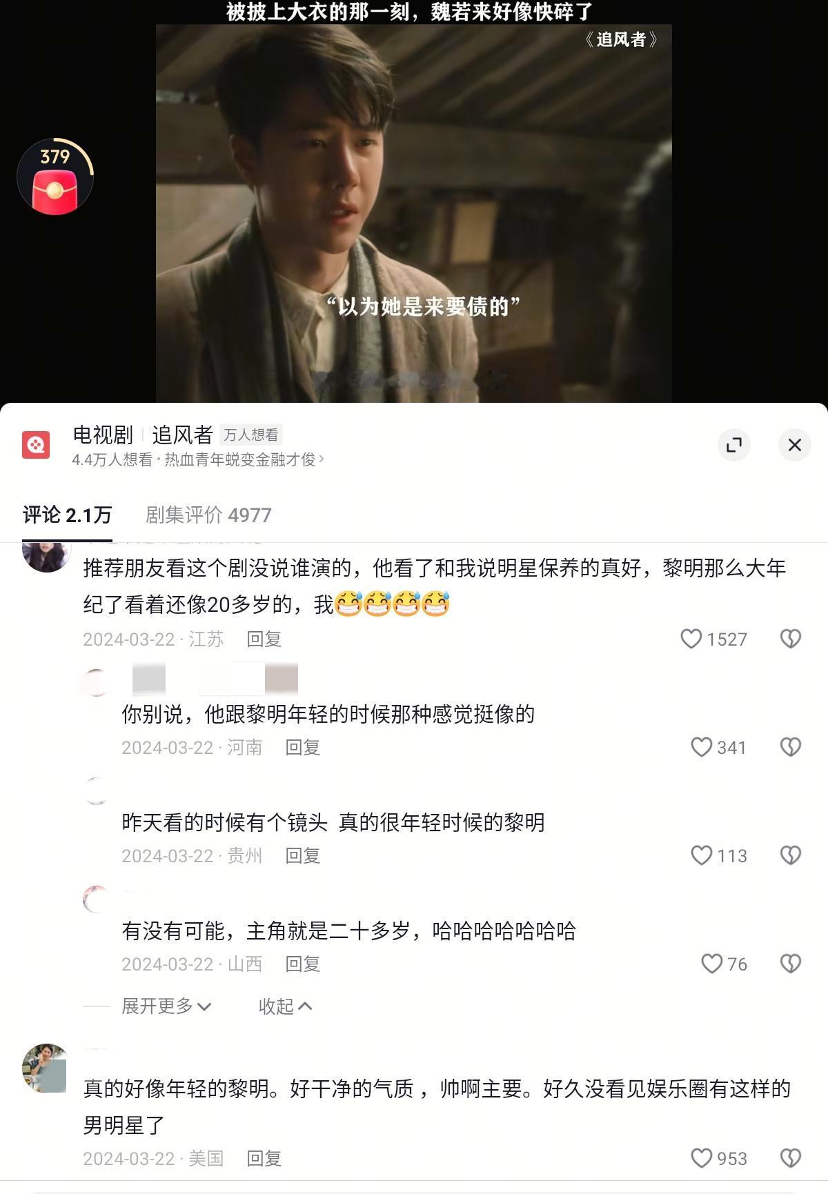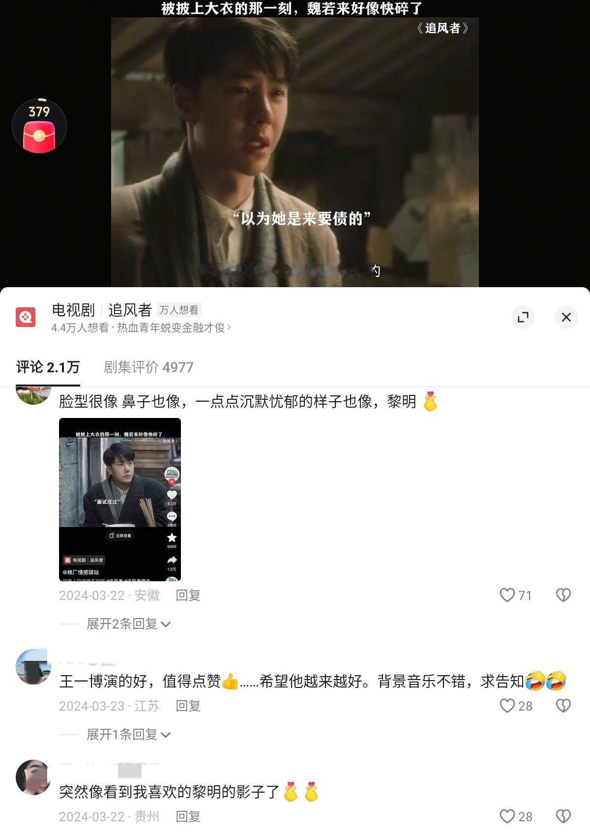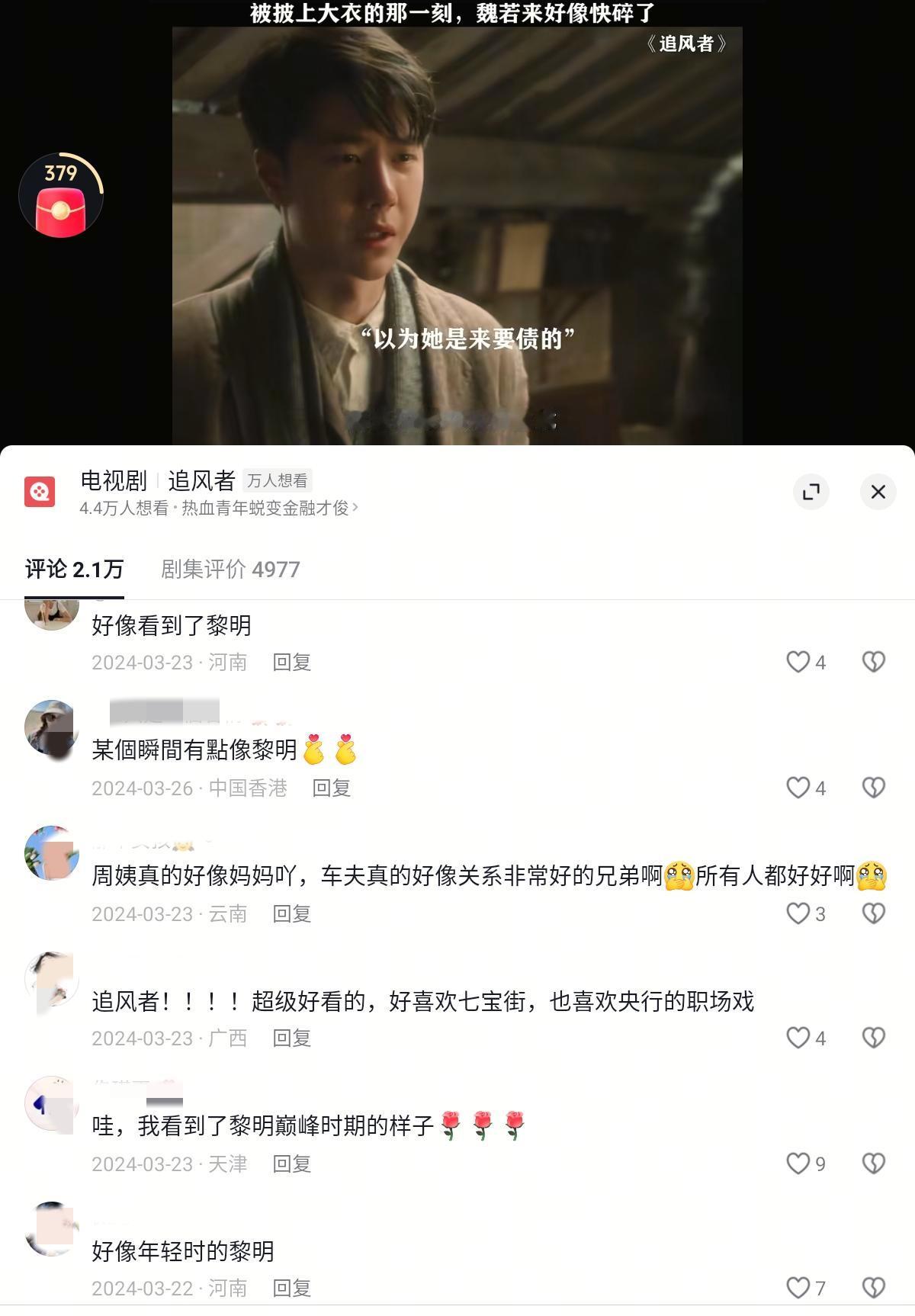 偶然刷到一条娱乐号发的追风者视频,58万高赞。一看是2024年3月21日开播那天晚上发的。这么高赞,可见当时热播的盛况。