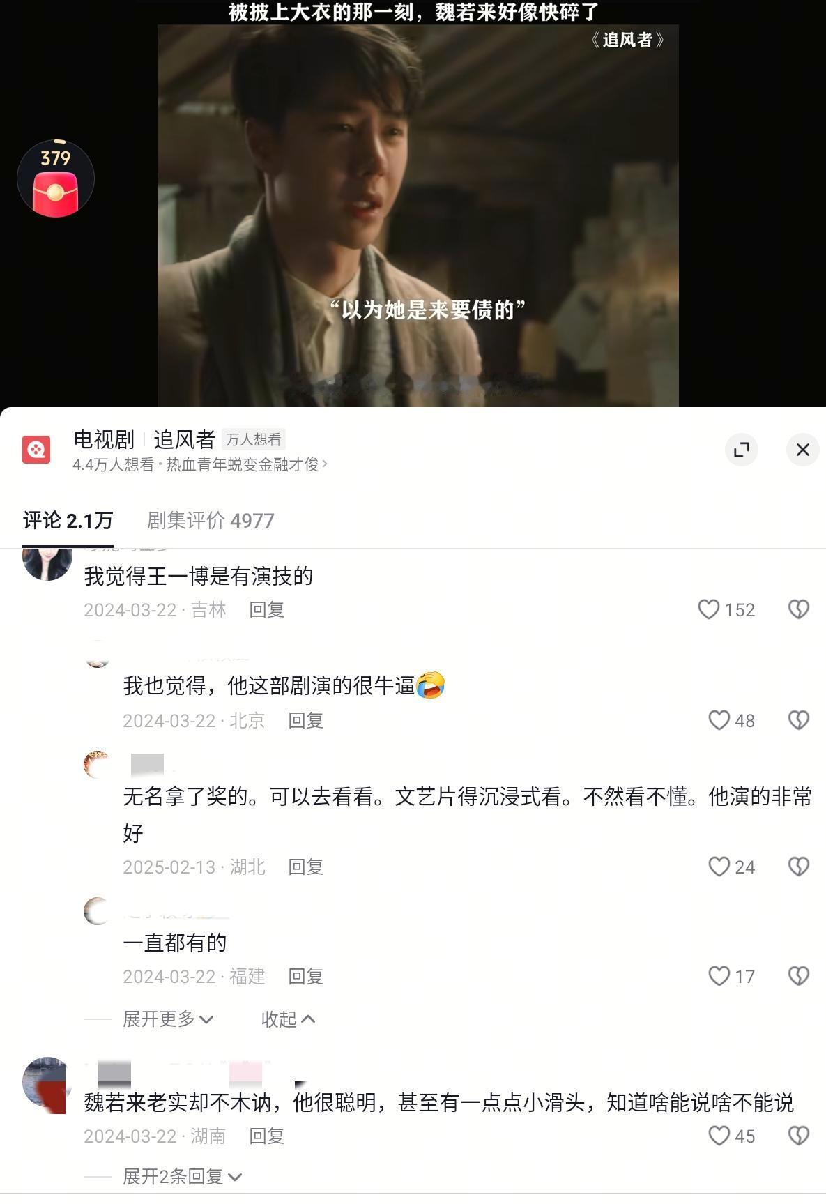 点开一看,评论区记录着开播的时光,好多路人自来水(翻看过了,绝大部分都是路人)在惊叹这就是王一博?像影坛前辈年轻时的感觉。