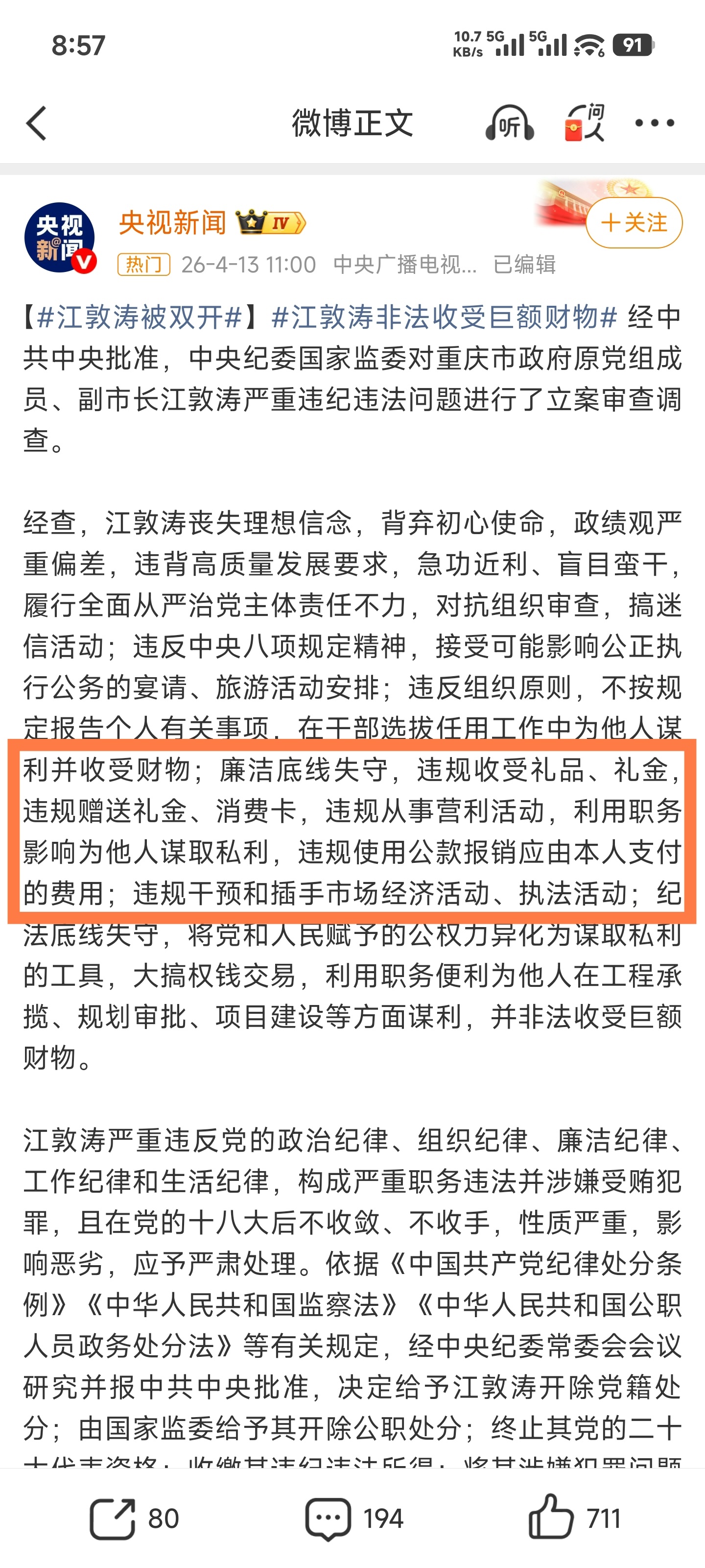 去年10月25日落马的,今天出的双开消息。有点期待他的裁判文书。