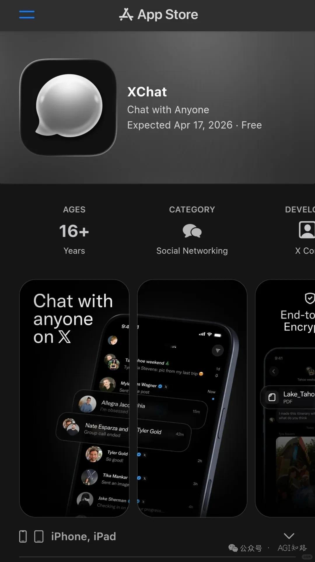马斯克版微信 目前已知支持以下功能• 端到端加密聊天• 阻止屏幕截图和录制• 可删除所有人的消息• 跨设备语音或视频通话• 聊天阅后即焚或自动消失• 数百人的大型群聊,支持 X