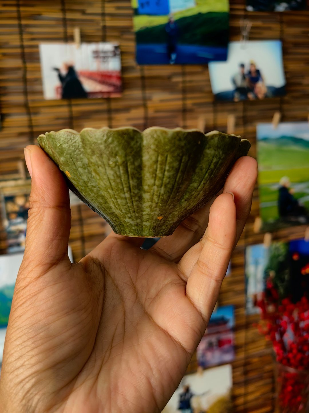 *碎碎念*午饭喝水,我会嫌平常用的茶杯浅,不够牛饮,某人拿出这只斗笠杯~青绿花瓣
