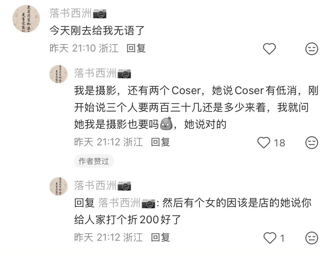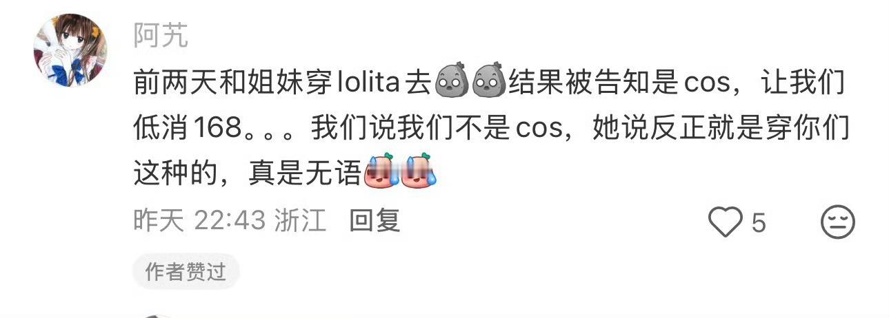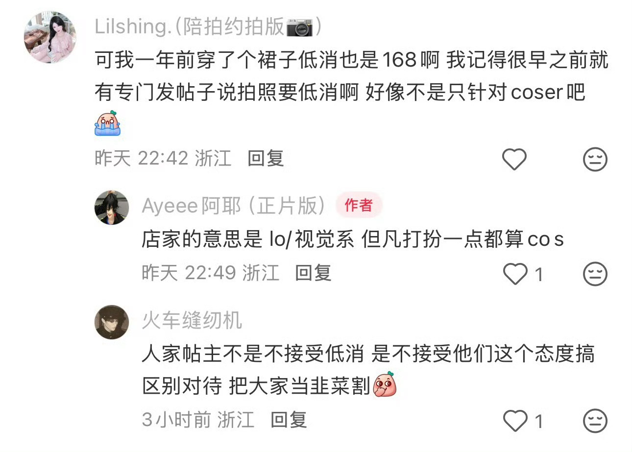 宁波网友称去咖啡店戴假发化浓妆被要求低消168 宁波一网友发帖吐槽:【宁波避雷】戴假发化浓妆=cos=低消168普通顾客38元的咖啡店凭什么对我们区别对待 和朋友只是日常出行我戴了顶假发,她化了稍浓的妆店员告知我们算cosplay消费要满168合着现在出门喝咖啡还要先检查妆容和发型?普通T恤牛仔裤38元一杯精心打扮反而要被区别对待coser避雷吧