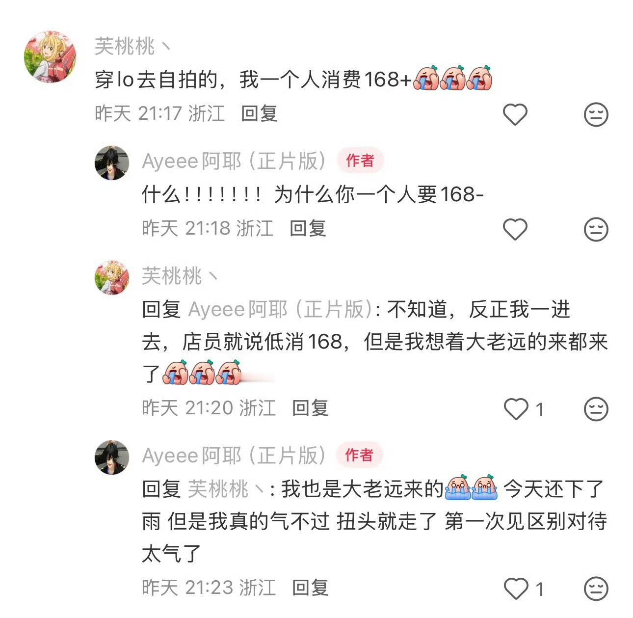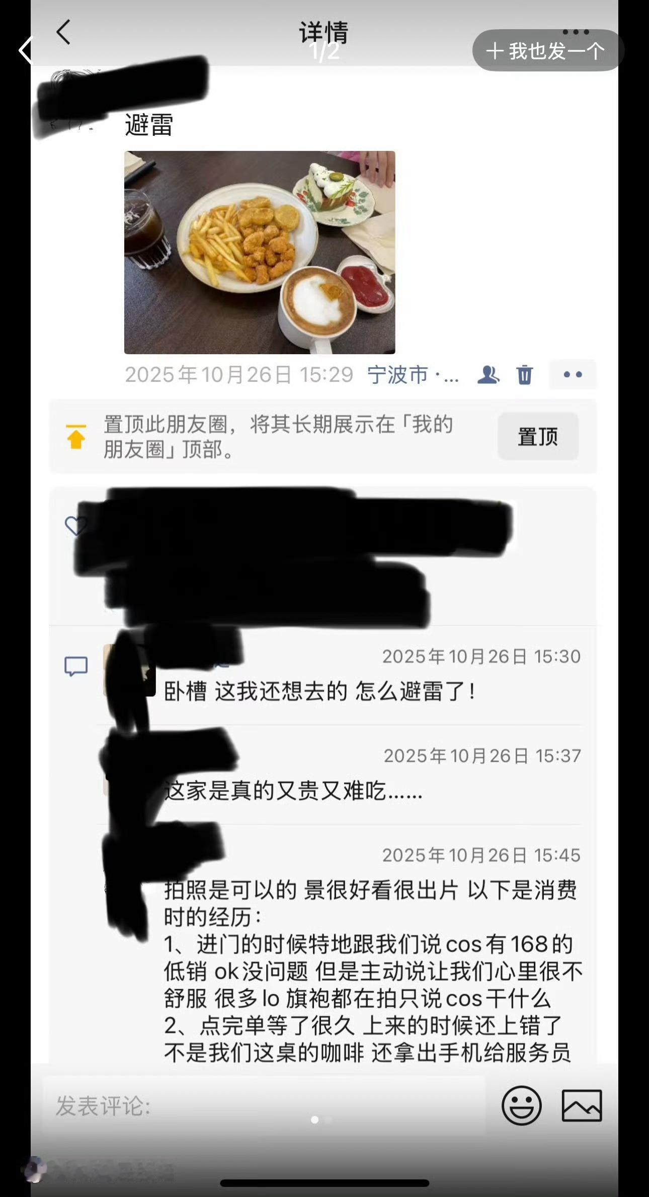 宁波网友称去咖啡店戴假发化浓妆被要求低消168 宁波一网友发帖吐槽:【宁波避雷】