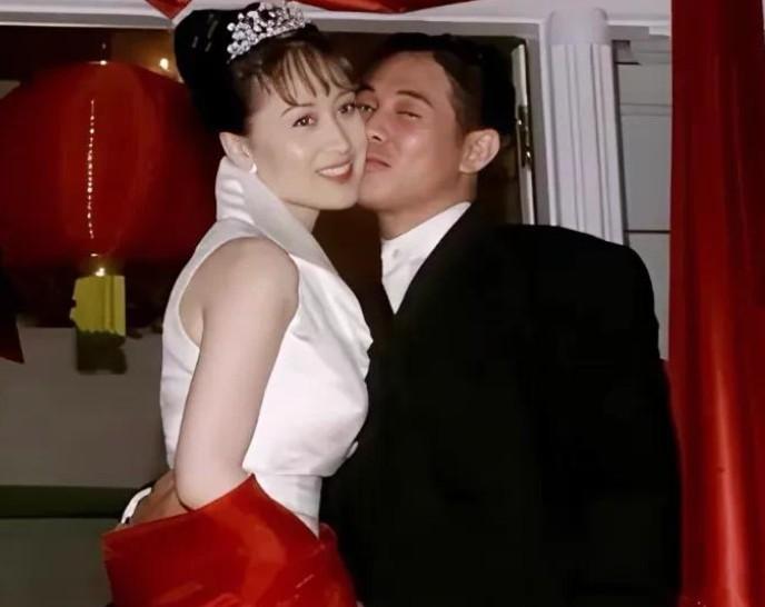当年李连杰和利智结婚时一张照片,利智有种满脸不情愿的感觉。
