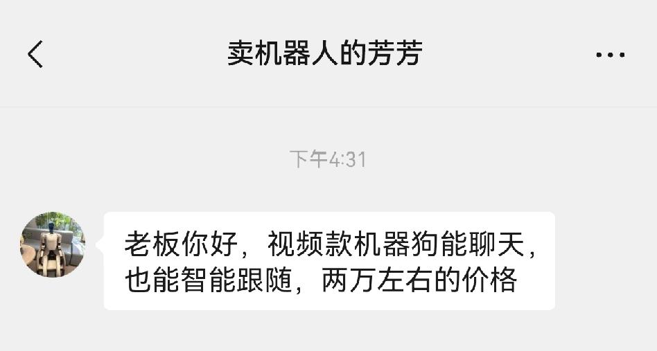 私下问了下博主,博主说了一下狗的功能,能聊天能跟随,价格在2万左右。