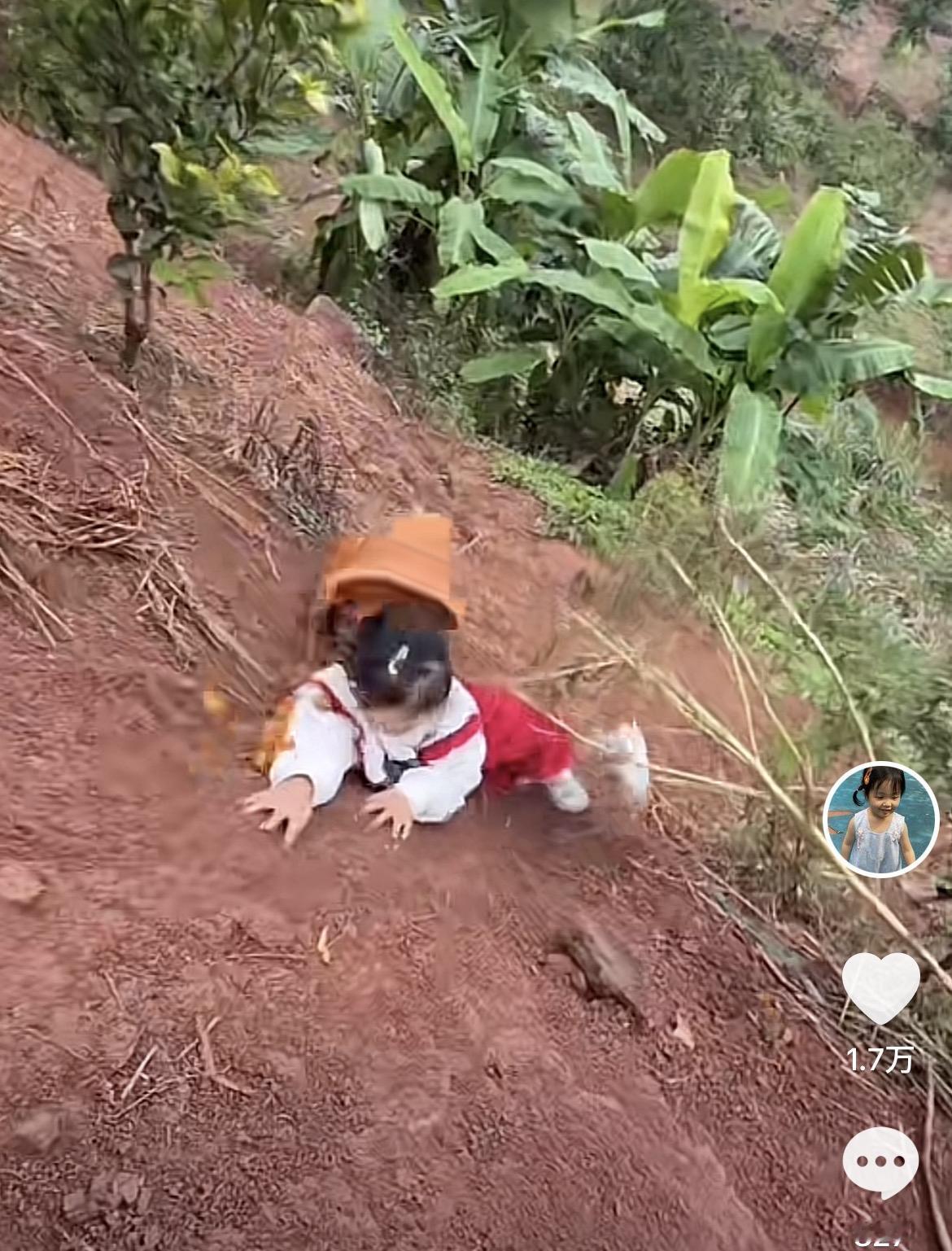 上次,徐开心摘羊奶奶果,也是开开心心地摘了几颗,一个不小心,就摔下坡了,当时摄像师开心地笑了,配乐是那个著名的“现在是匆匆忙忙连滚带爬”!
