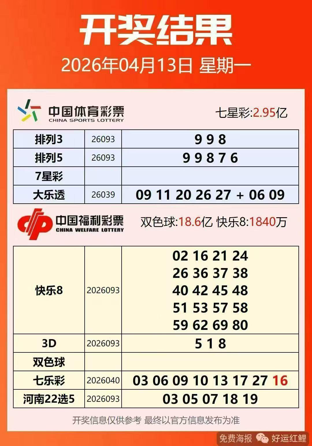 本期大乐透开奖号码前区红球大中小区号码都有分布比较均匀,没有重号开出。一等奖开出11注,单注奖金571万多元,追加一等奖开出3注,单注奖金457万元。一等奖中奖分布情况:内蒙古重庆福建云南各中得一注基本一等奖,陕西中得一注追加一等奖,河南中得两注基本一等奖,广东中得四注基本一等奖其中两注追加一等奖。大乐透竞彩
