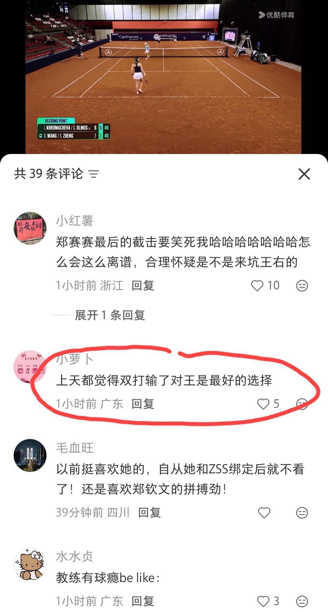 王欣瑜、郑赛赛组合2:6、3:6不敌对手,首轮出局的同时也遭遇了四连败。可对于这
