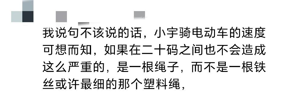 其实网友也有一个疑问,这么粗的绳子按道理说不像钢丝绳或者铁丝那样很细,如果骑车速度慢一点的话,很可能伤的不会这么严重。
