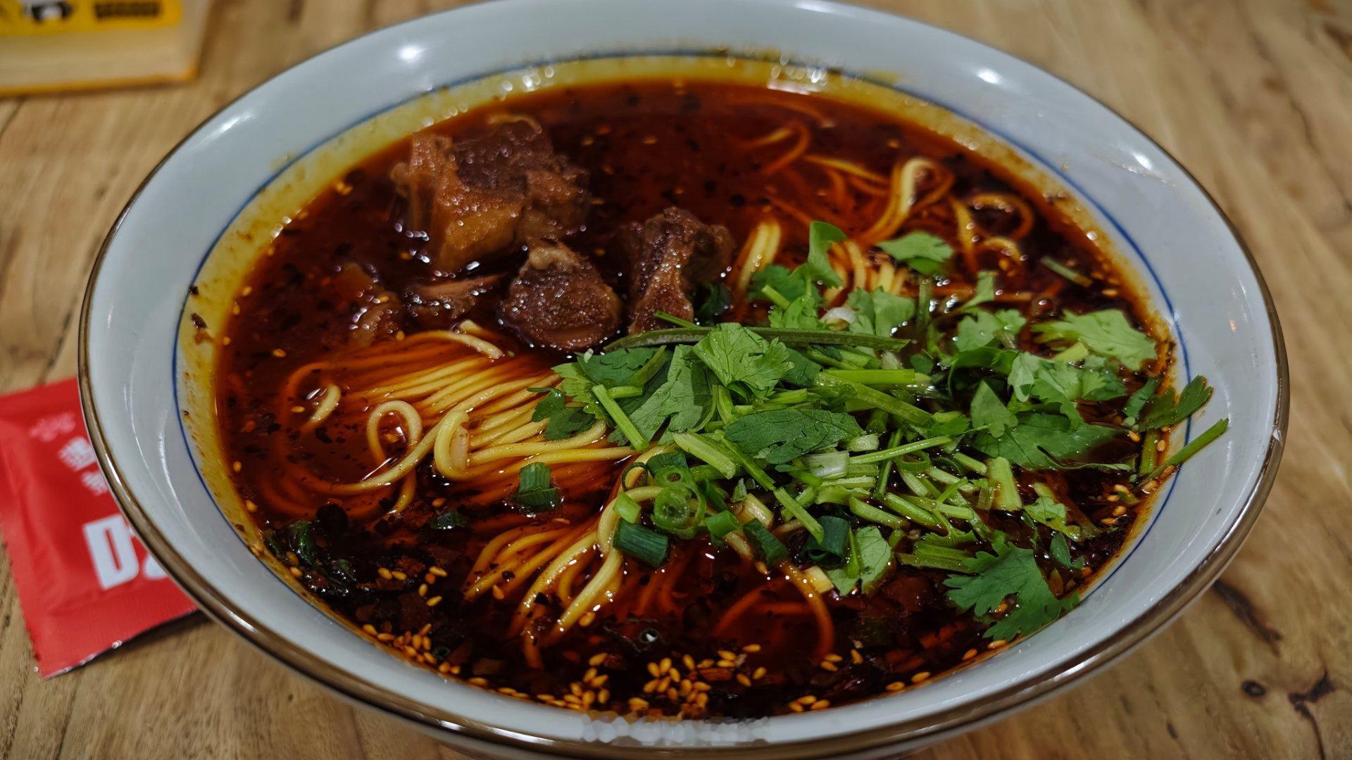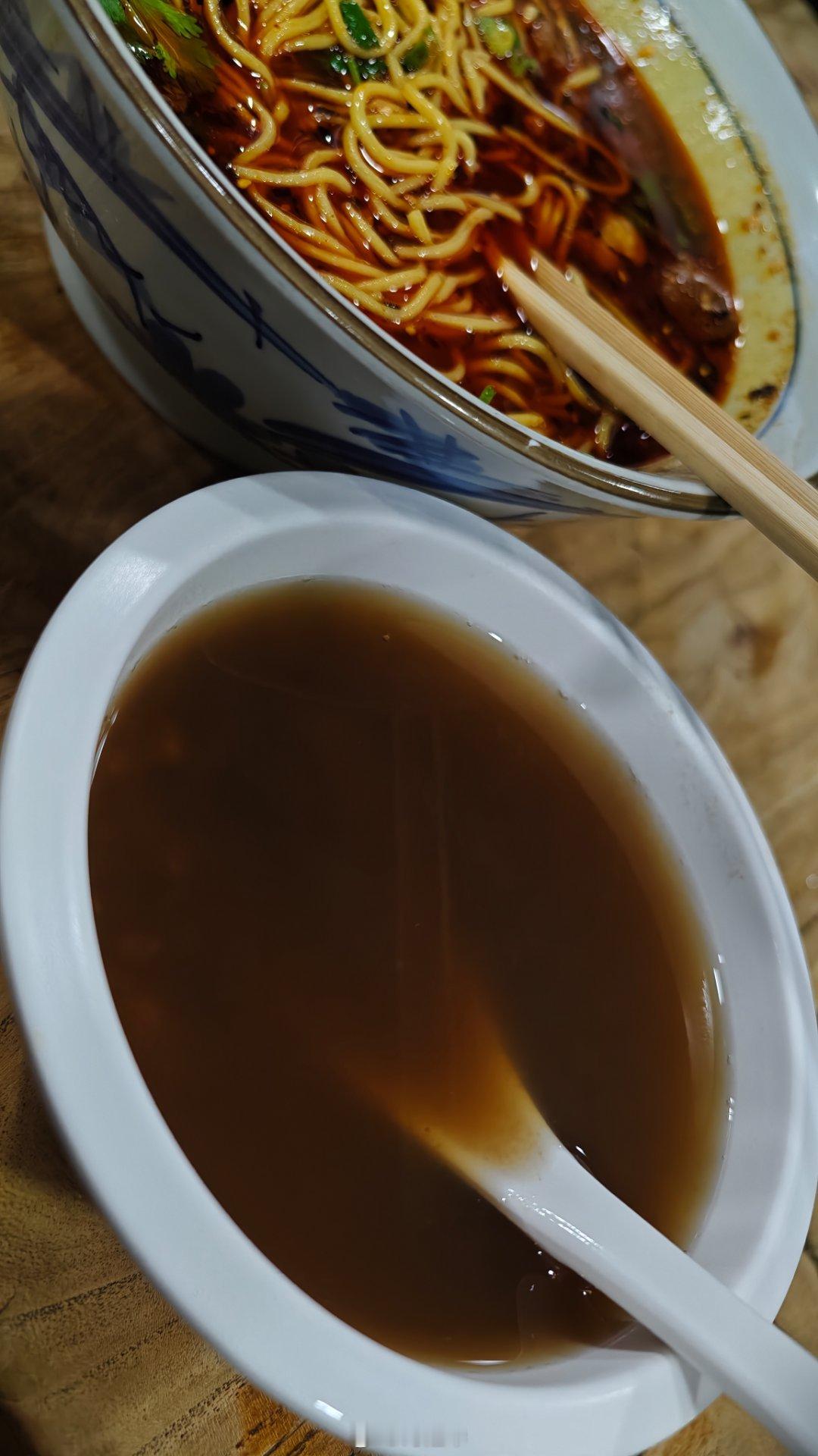 味道确实不错,但是没什么特色,主要是依靠辣椒油和麻椒产生的麻辣口味。没有什么特殊的口味。它有很多的辣度和麻度可以选择。我为了尝试他们家最经典的口味,所以点的是最常规的牛肉面和推荐的辣度和麻度,也就是微辣和正常麻。我属于吃辣能力一般的,它这个辣度对我来说已经有点高了,而且麻度确实比较高,吃几口以后就感觉味觉都被麻住了。性价比非常高,24块钱的面,里面有好几大块牛肉。如果单吃牛肉的话,每一块要嚼半天。第一是因为块大,第二也是因为不是那么嫩。如果是把牛肉分开跟面一块吃的话,甚至每一口面都能带肉。服务人员很多,效率很高。即便这么忙,服务员还是用敬语。环境其实还可以,比较干净。但就是人太多了,很嘈杂,而且比较挤。总体来说,没必要大老远特意跑一趟,但是如果距离不远的话,还是挺值得常吃的。 北京·勇盛牛肉面(红庙店)