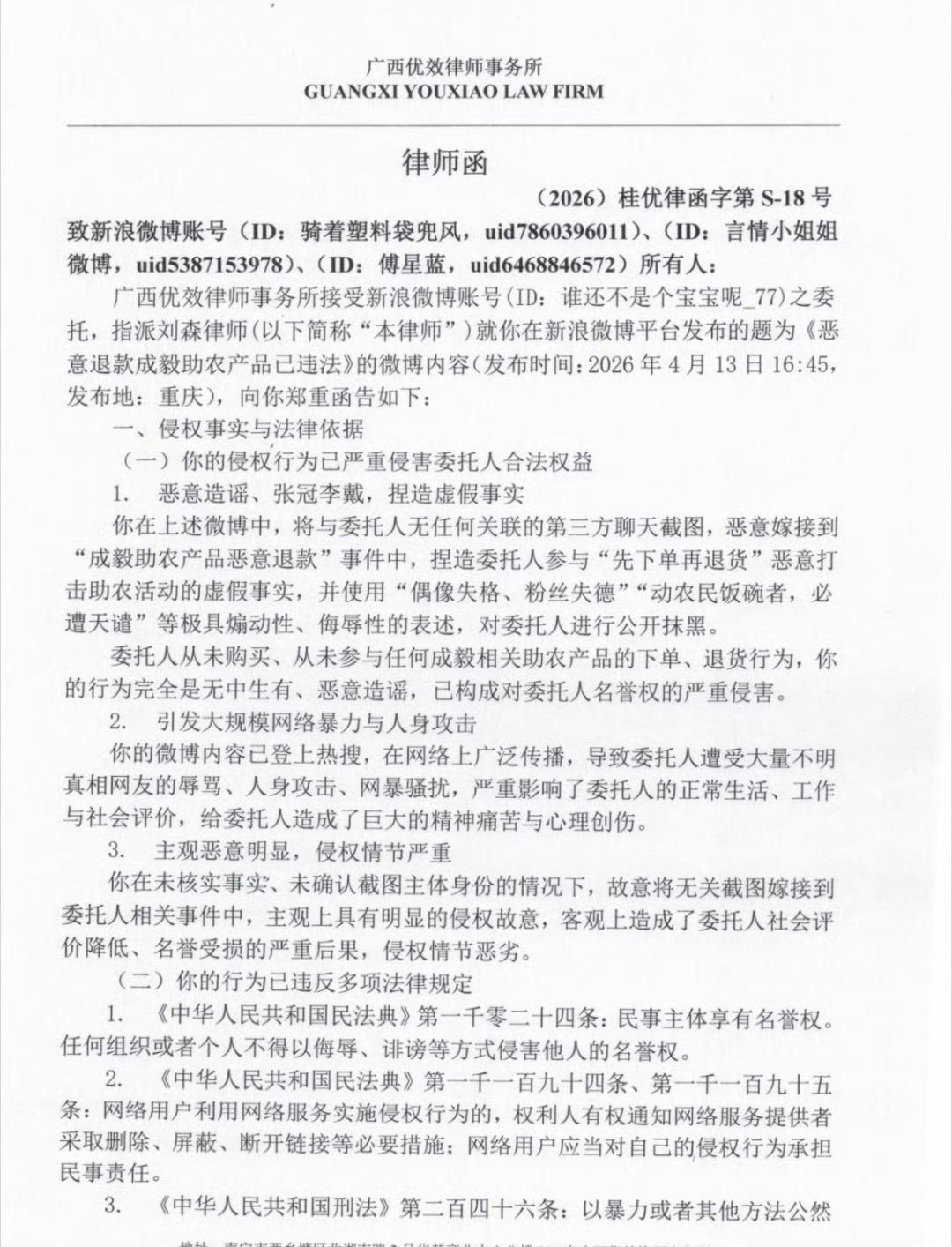 热搜上被移花接木造谣退款的素人朋友已经在维权了,已经委托律师取证造谣辱骂她的人,
