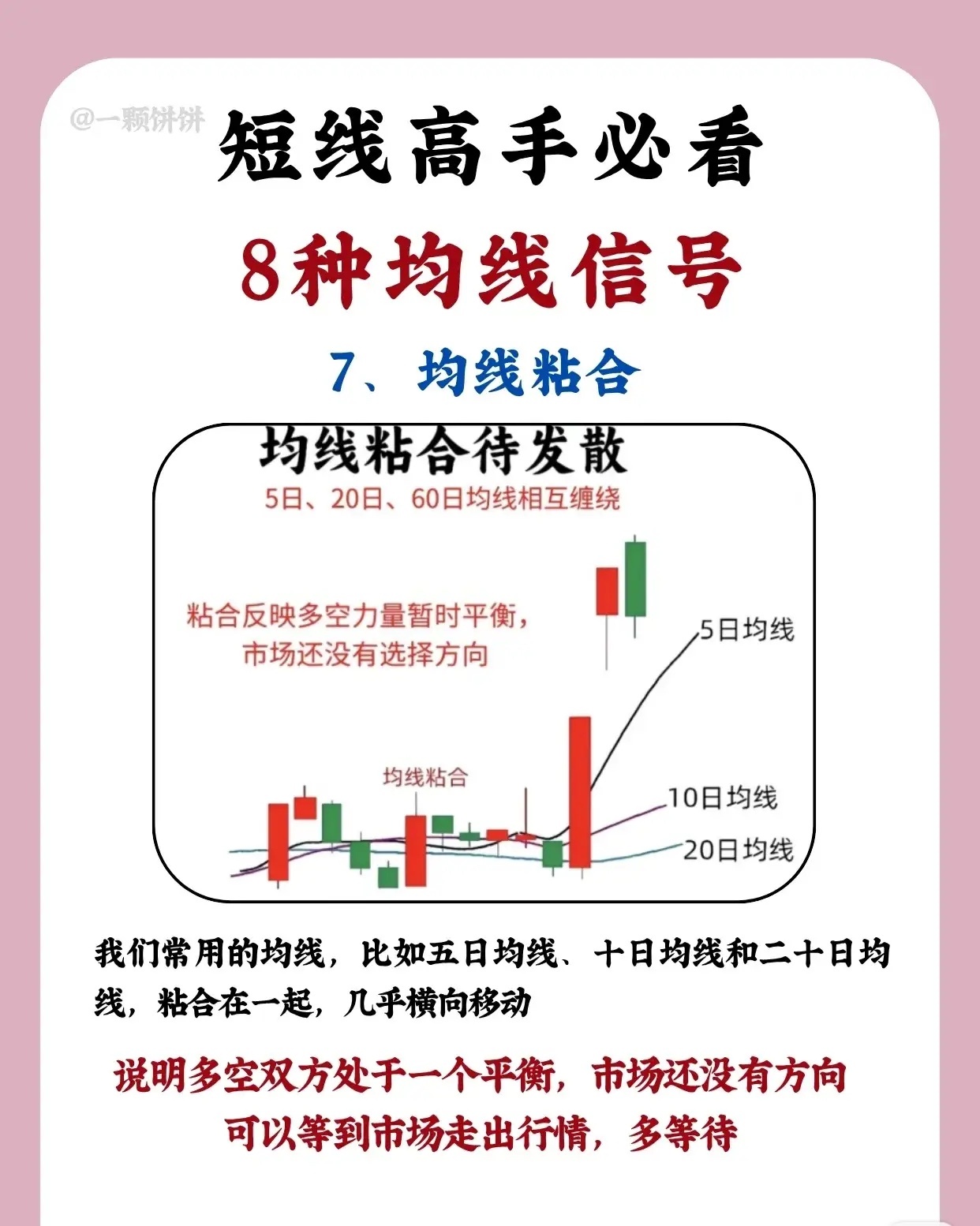 均线粘合反映多空力量暂时均衡,市场方向不明。此时不宜贸然入场,宜等待均线发散、方向确立后再操作。