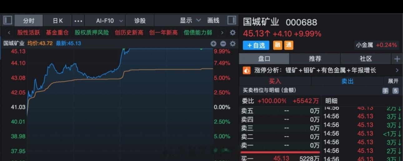 市场热点方面,新能源产业继续保持活跃,今日锂电方向领涨,锂矿板块指数午后一度放量拉升创历史新高。盛新锂能、国城矿业均在中午开盘后直线涨停,大中矿业则在临近收盘涨停。