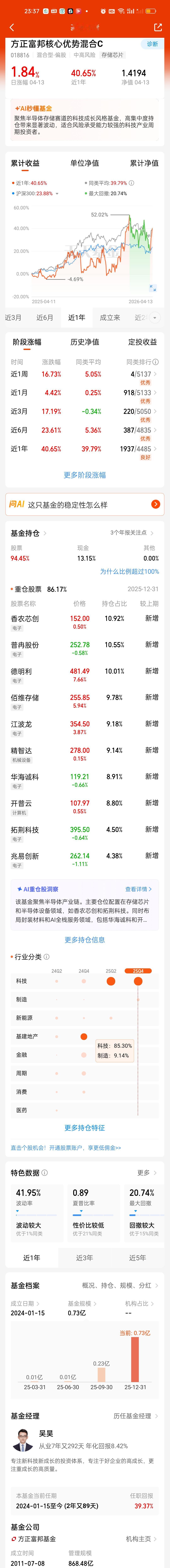 三只纯血存储芯片基,先锋开的净值最高,开涨2.03%,阿尔法科技第二开1.87%,方正富邦第三开1.84%,与估值十分接近。说明到目前为止它们依旧是整个市场上仅有的重仓存储芯片的纯血基金。而广发远见仅仅看持仓不应该开绿,因为持仓里涨6%7%的个股都有,而其它个股跌幅并不大。所以经过连续多天的跟踪我们已经可以确定广发远见肯定调仓换股了。而且很有可能换入了以下几只个股。
