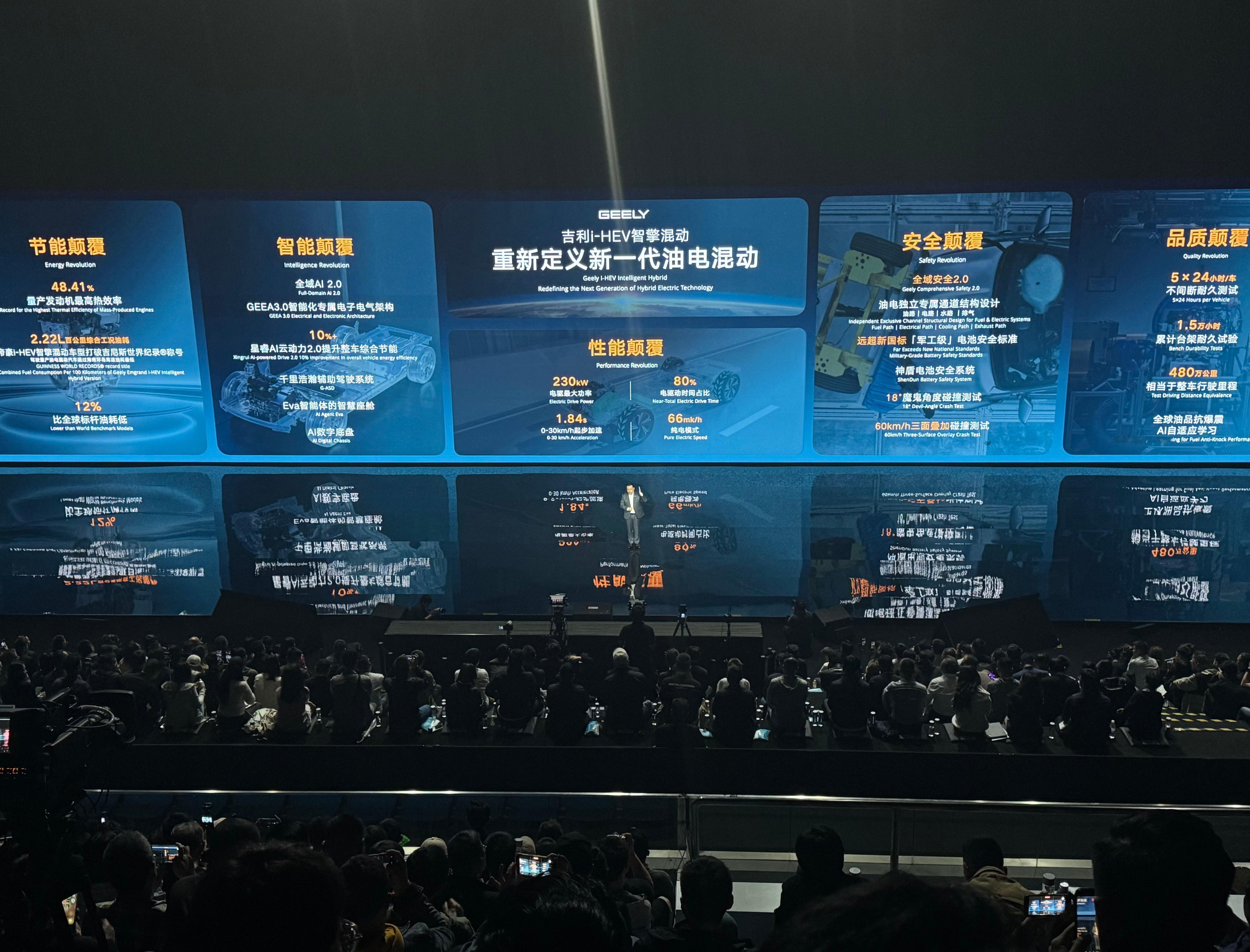 世界混动,中国力量!吉利i-HEV智擎混动技术发布!AI智控+极致省油,颠覆传统混动格局!48.41%全球量产最高热效率,百公里油耗2.22L斩获吉尼斯纪录,中国混动实现代际领先。 中国混动油耗打破世界纪录中国有哪些技术被全球抢着要