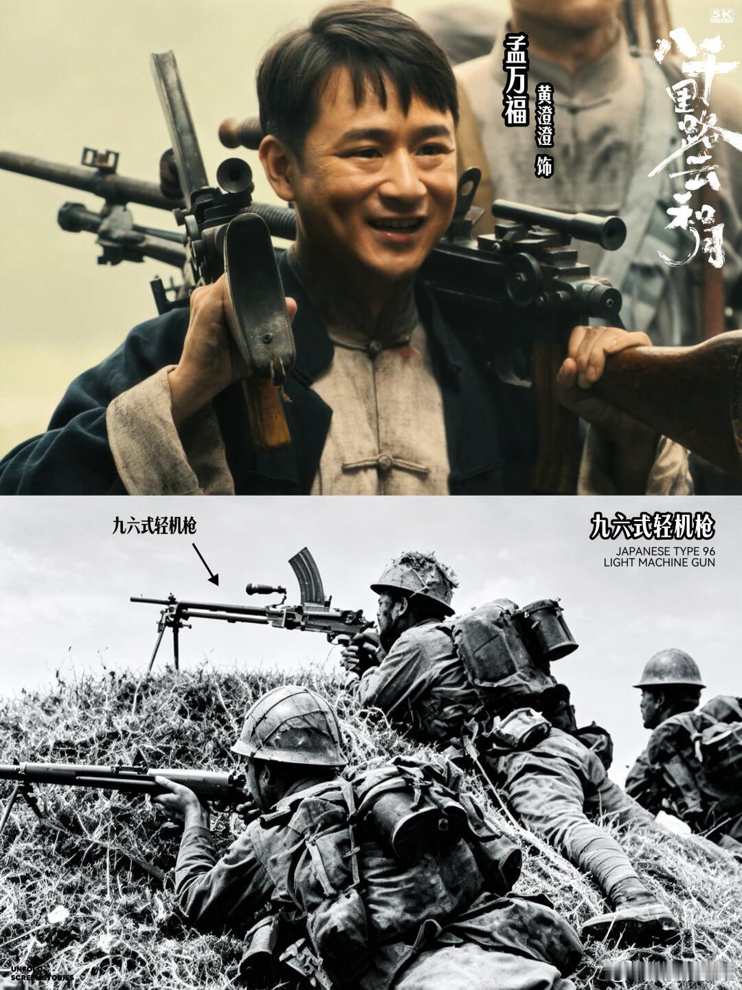 开场时孟万福扛着的那挺机枪,老军迷一眼就能认出是九六式轻机枪,外号“拐把子”。抗战前期本子用的是歪把子,后期升级为拐把子。这机枪,既说明剧集的时间线站得住脚,抗战已经到后半程,也说明本子在实战中提升着武器的工业能力,更说明说明万福打了胜仗,从本子那缴获了武器。敌人狡猾而强大,而我们的英雄更强大。