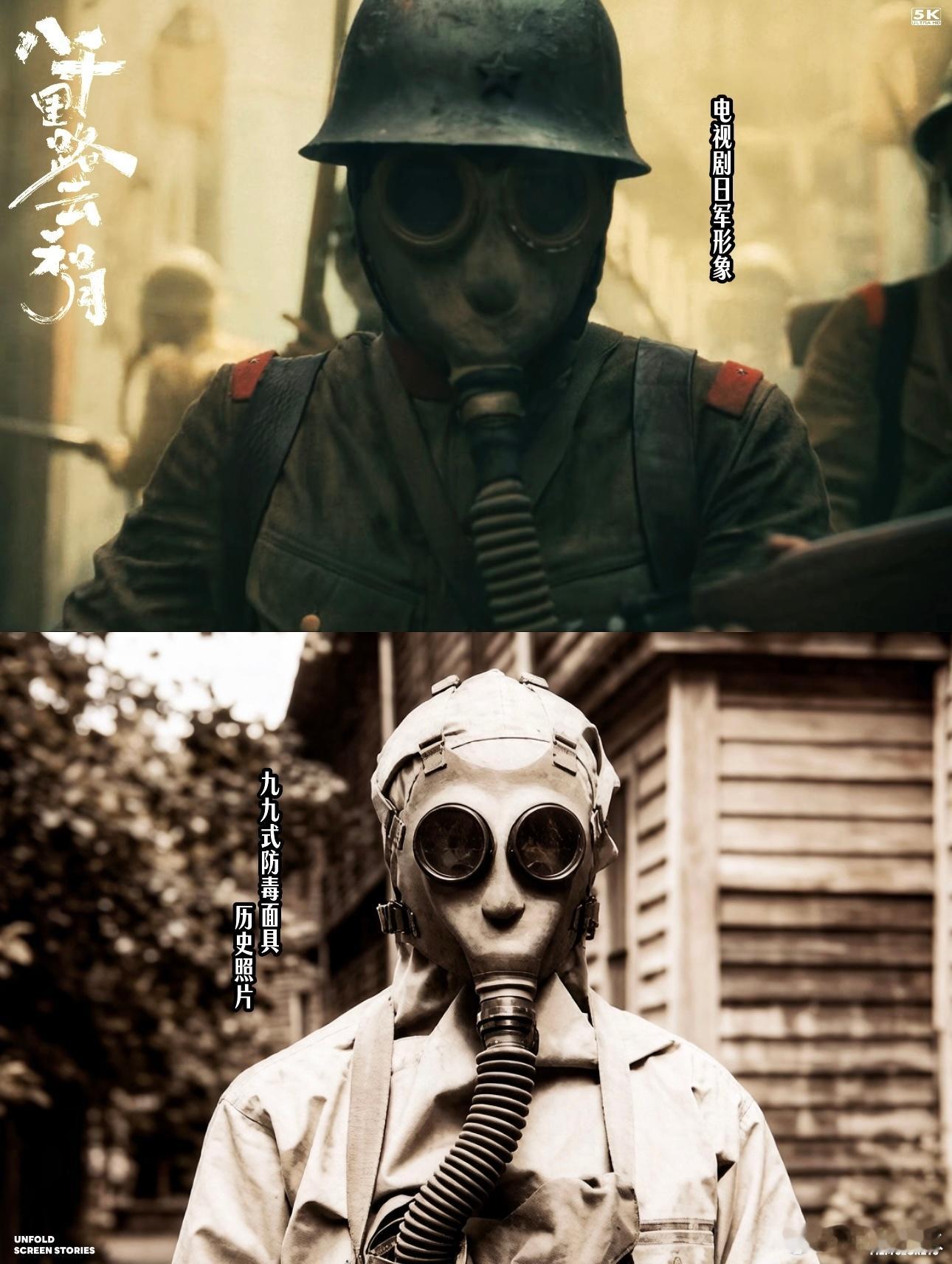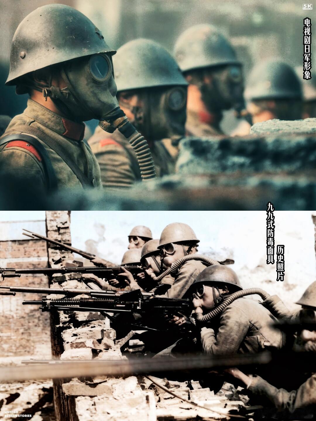剧中日军佩戴的那款形似“象鼻”或“猪嘴”的防毒面具,是九九式防毒面具,它是鬼子在战场上发动化学战争的标配。它既说明鬼子当时的军事实力,更是本子军国主义违反国际公约,大规模使用化学武器的罪证!