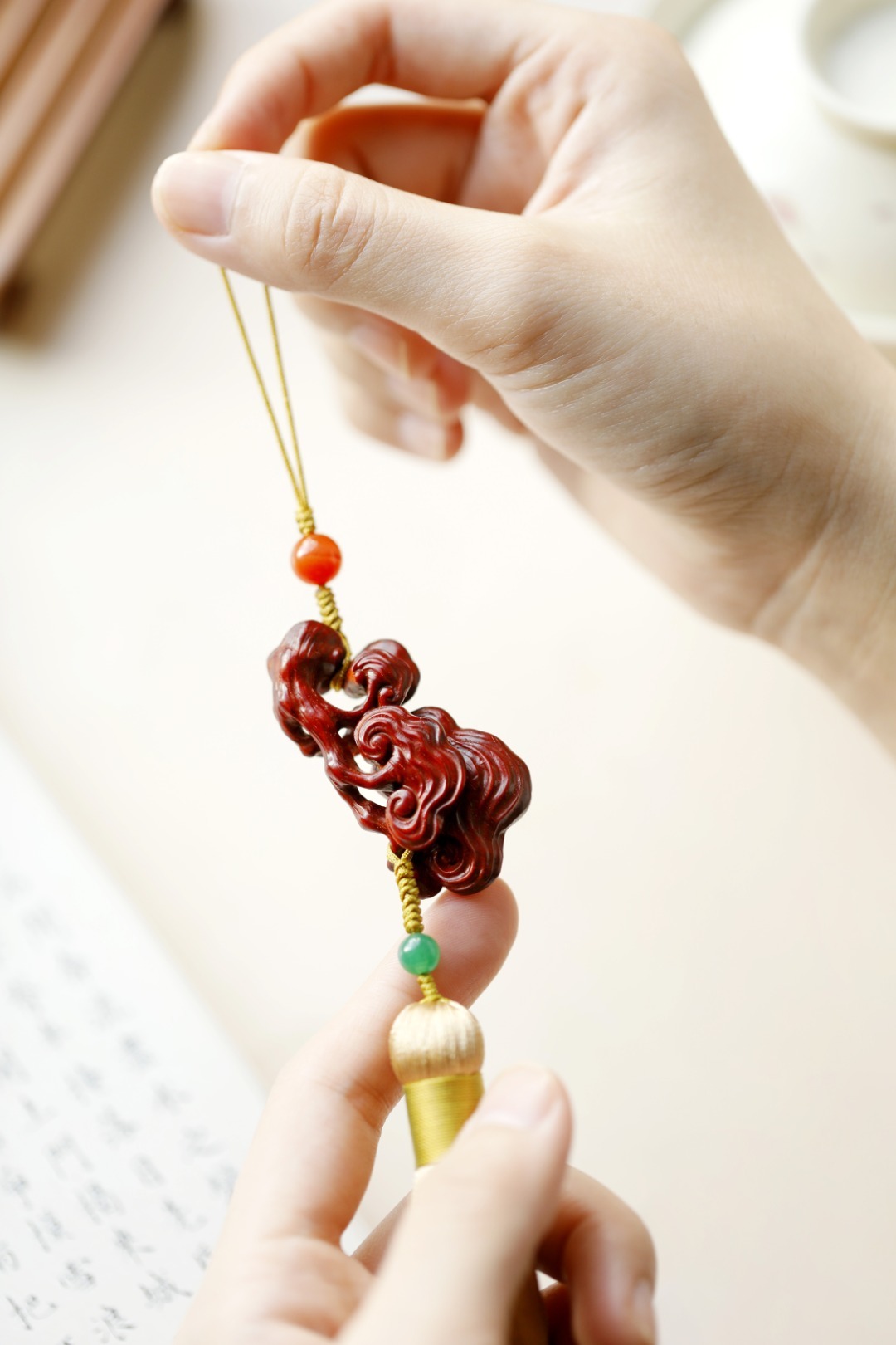 小叶紫檀【灵芝】钥匙扣 挂件紫檀木老料镂雕,灵芝数朵,象征吉庆祥和、祥瑞福祉,配