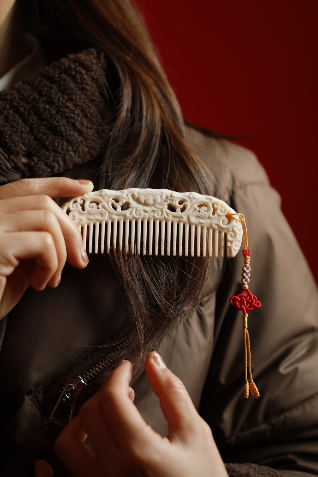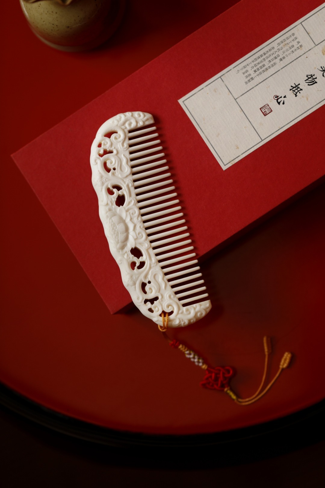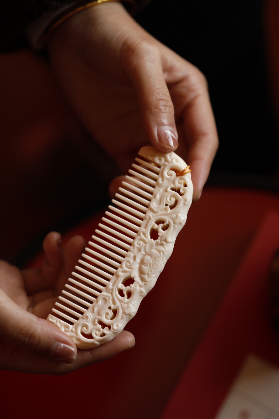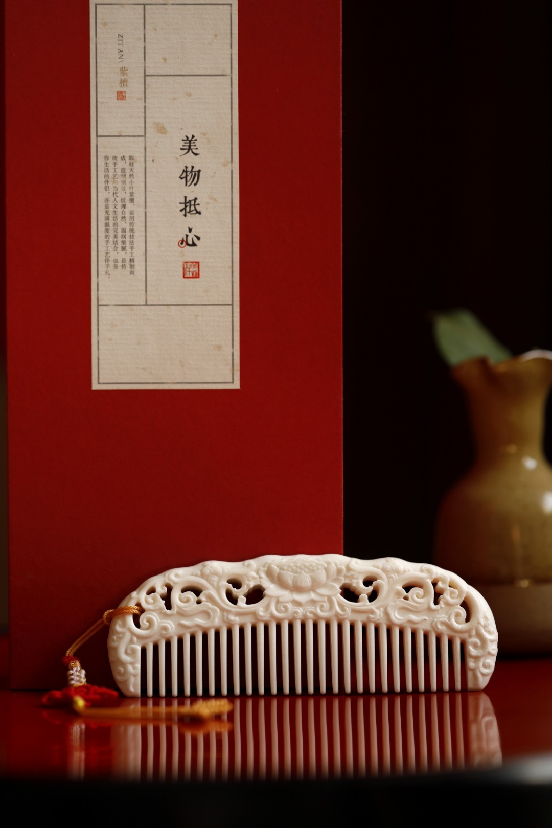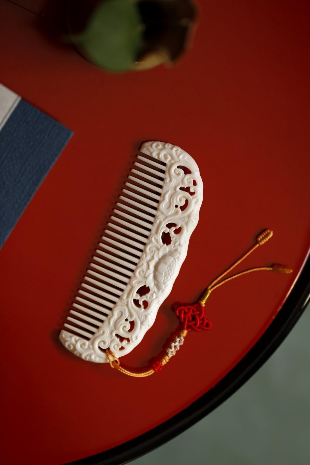 鹿角质感在图,手感在心,手工雕西番莲纹,灵性四溢;再配上流苏,更是优雅动人,圆齿好入发,且不伤头皮。