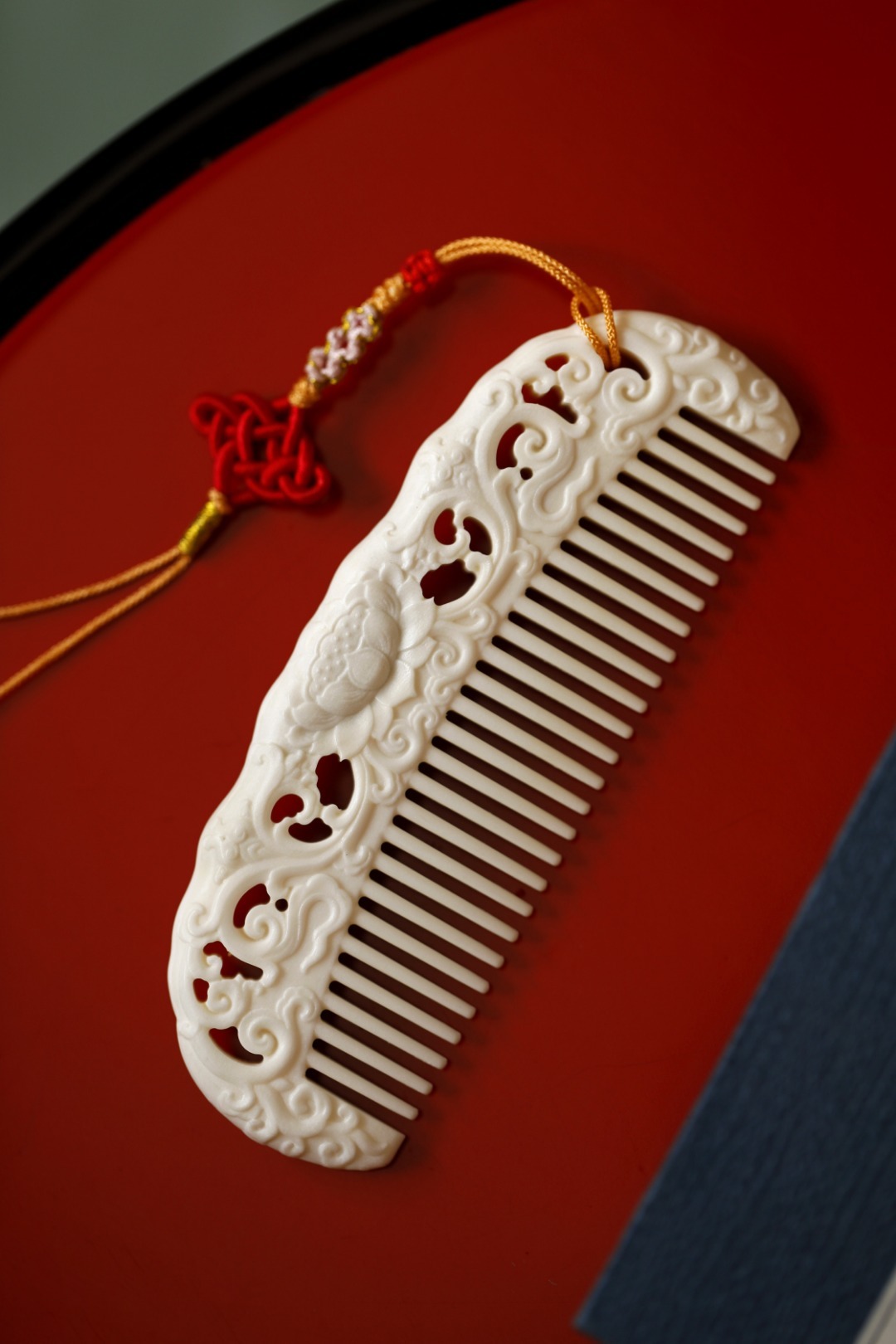 鹿角 | 青莲·梳子鹿角质感在图,手感在心,手工雕西番莲纹,灵性四溢;再配上流苏