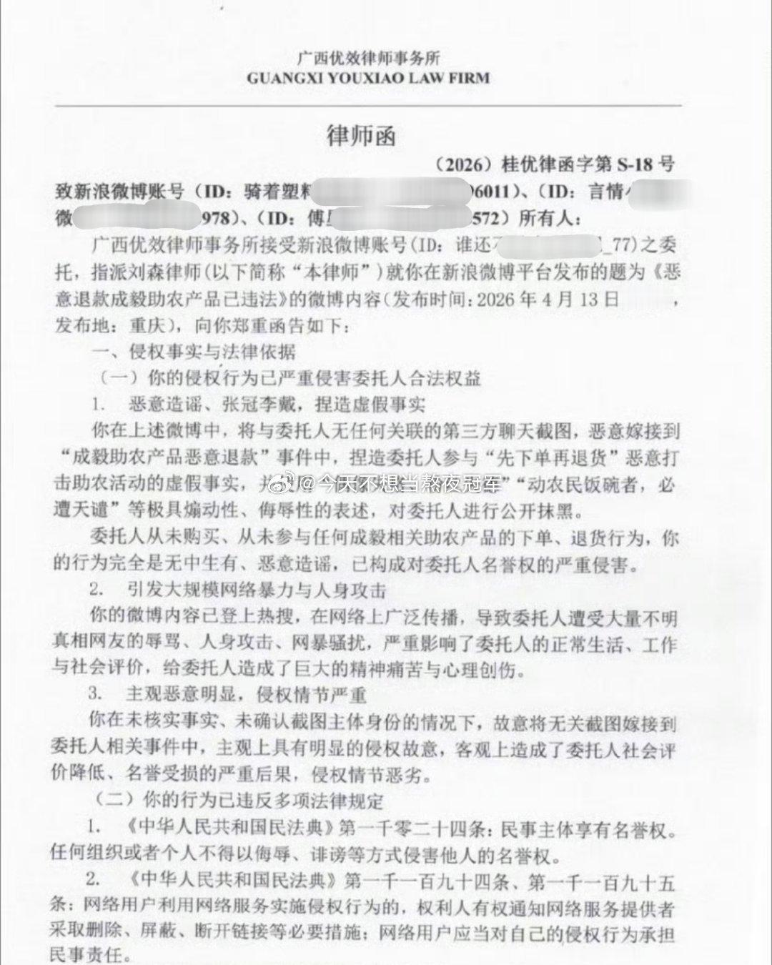 今天rs上的当事人已经打了妖妖零,并发了律 师 函,要求公开道歉