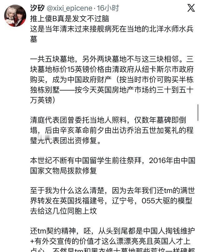 在我看来,这个墓地待遇的例子有几点值得理性分析。它推动了中外民间合作,中国方面主动修缮,不仅维护了历史遗迹,还促进了文化交流,英国当地政府和侨界参与其中,显示出实际操作中双方可以找到共同点。