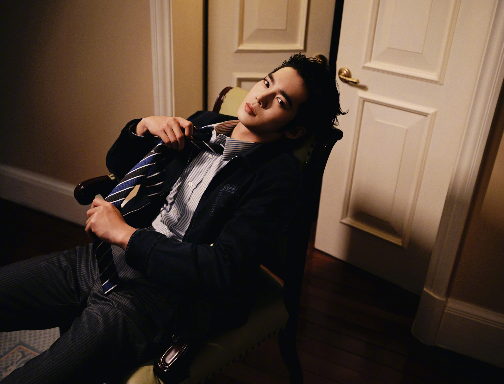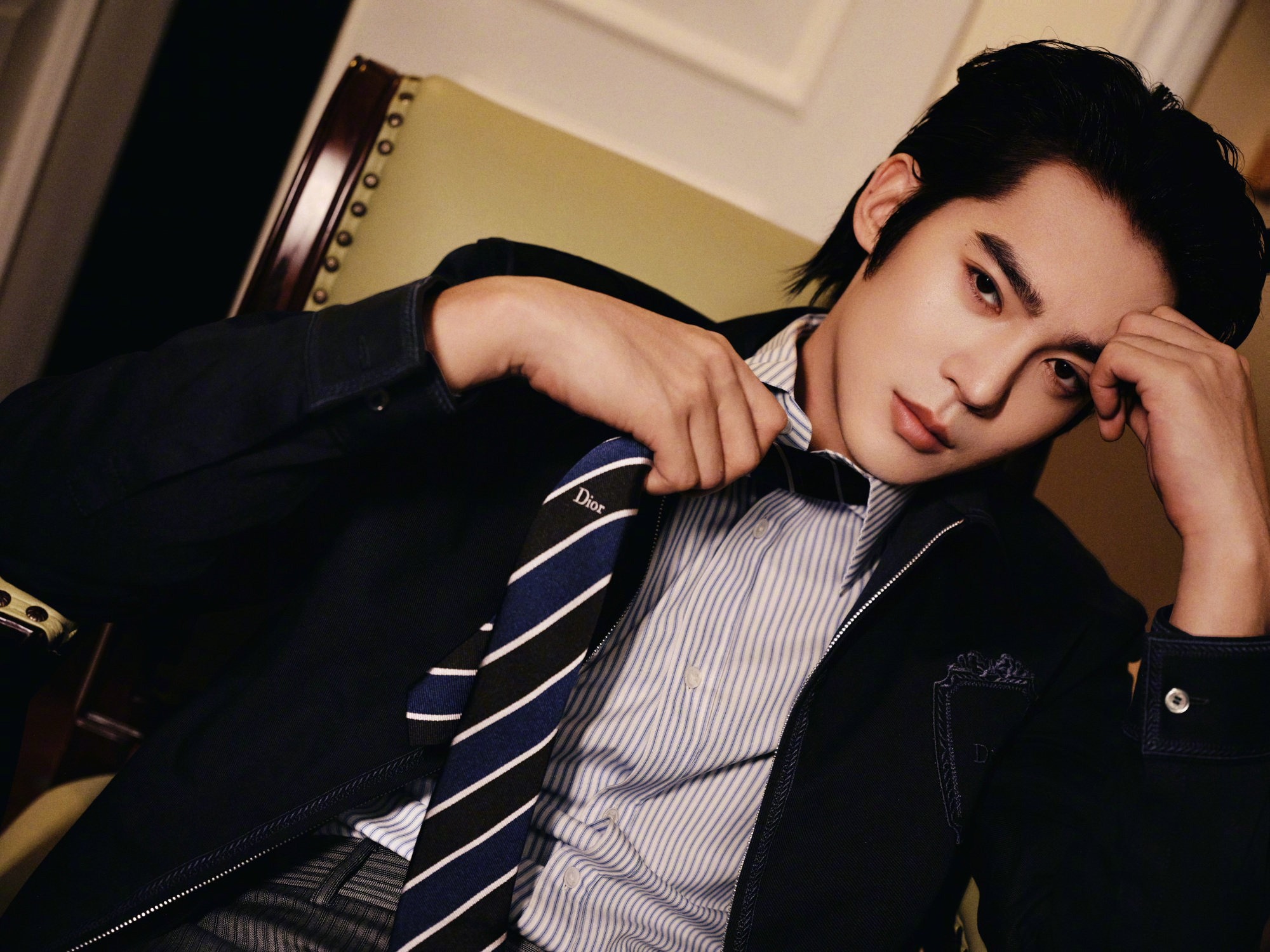 于适 in Dior 📷 今日活动造型图,夹克搭条纹领带,梳起利落大背头,硬朗有型的绅士风范,带着旷野男香的气息~ 🌌✨