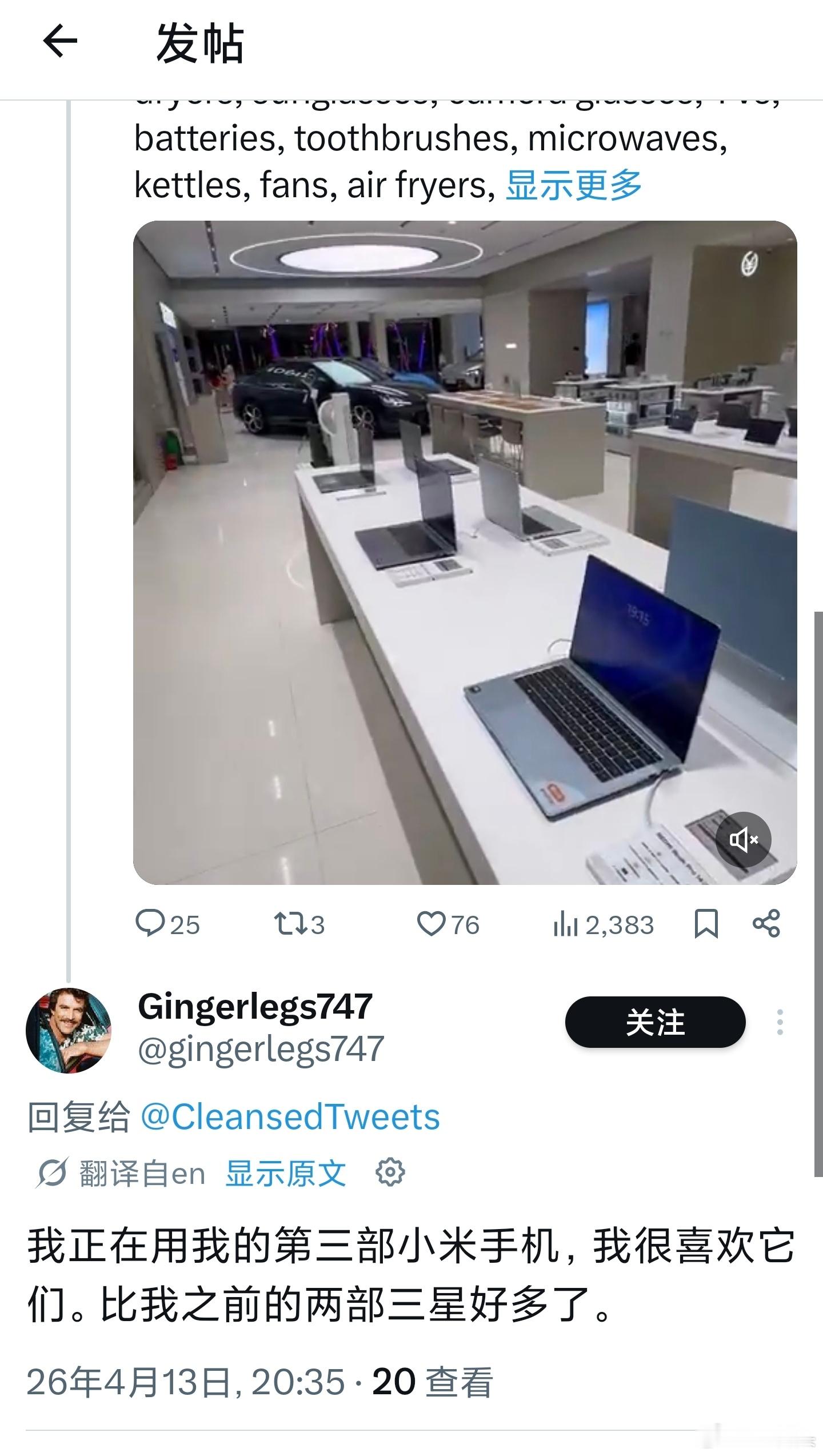 刚刷到条帖子,看了下评论区,我绷不住了…仅有的两条中文评论,骂小米质量差、贴牌货