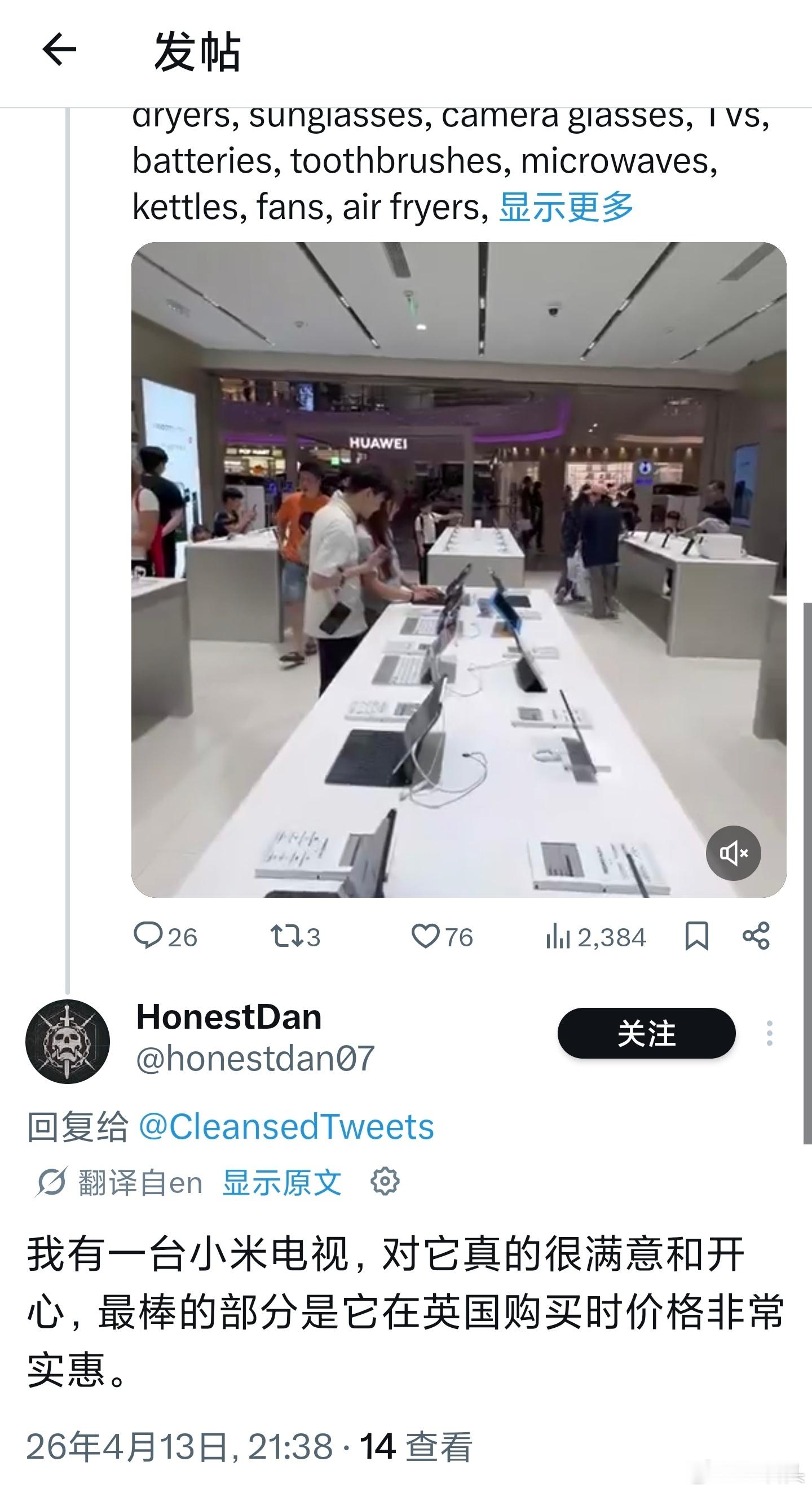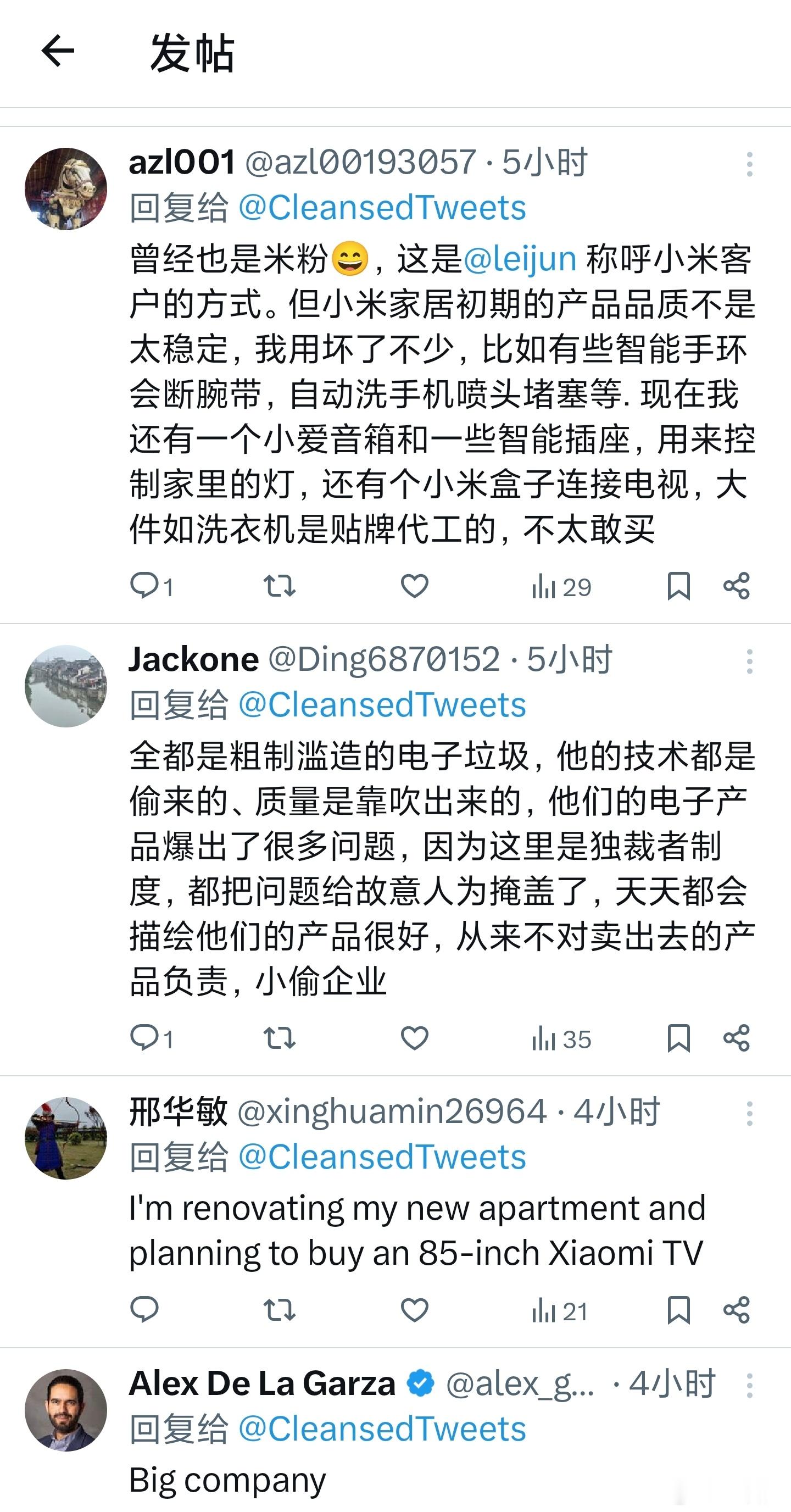 刚刷到条帖子,看了下评论区,我绷不住了…仅有的两条中文评论,骂小米质量差、贴牌货、小偷企业,然后英文评论全是交口称赞