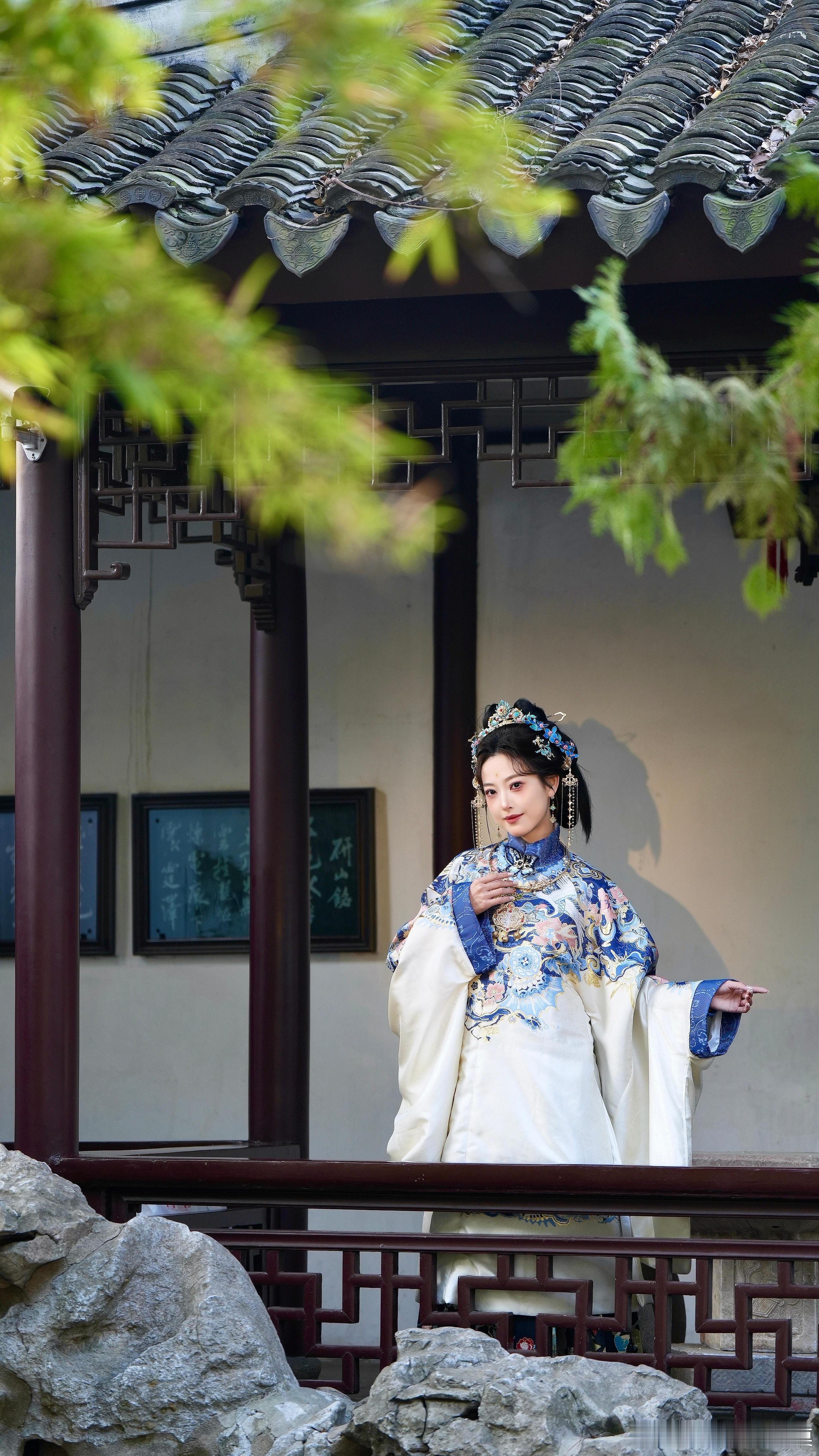 一襲明制华服,半面温婉笑意,是刻在东方骨血里的雍容与雅致。苏州园林约拍汉服写真国