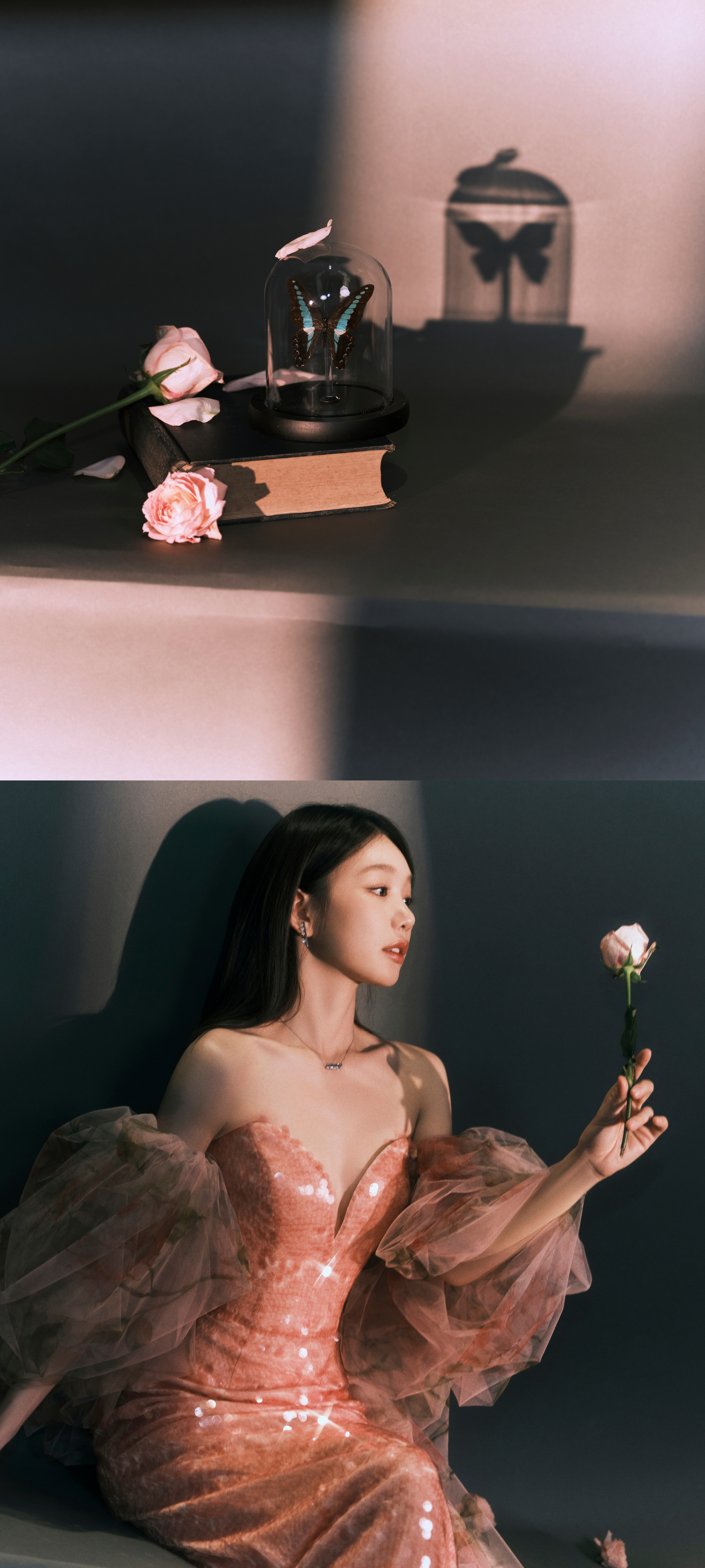 张艺凡泳池写真,光脚丫美腿,玫瑰色彩甜美怡人。张艺凡