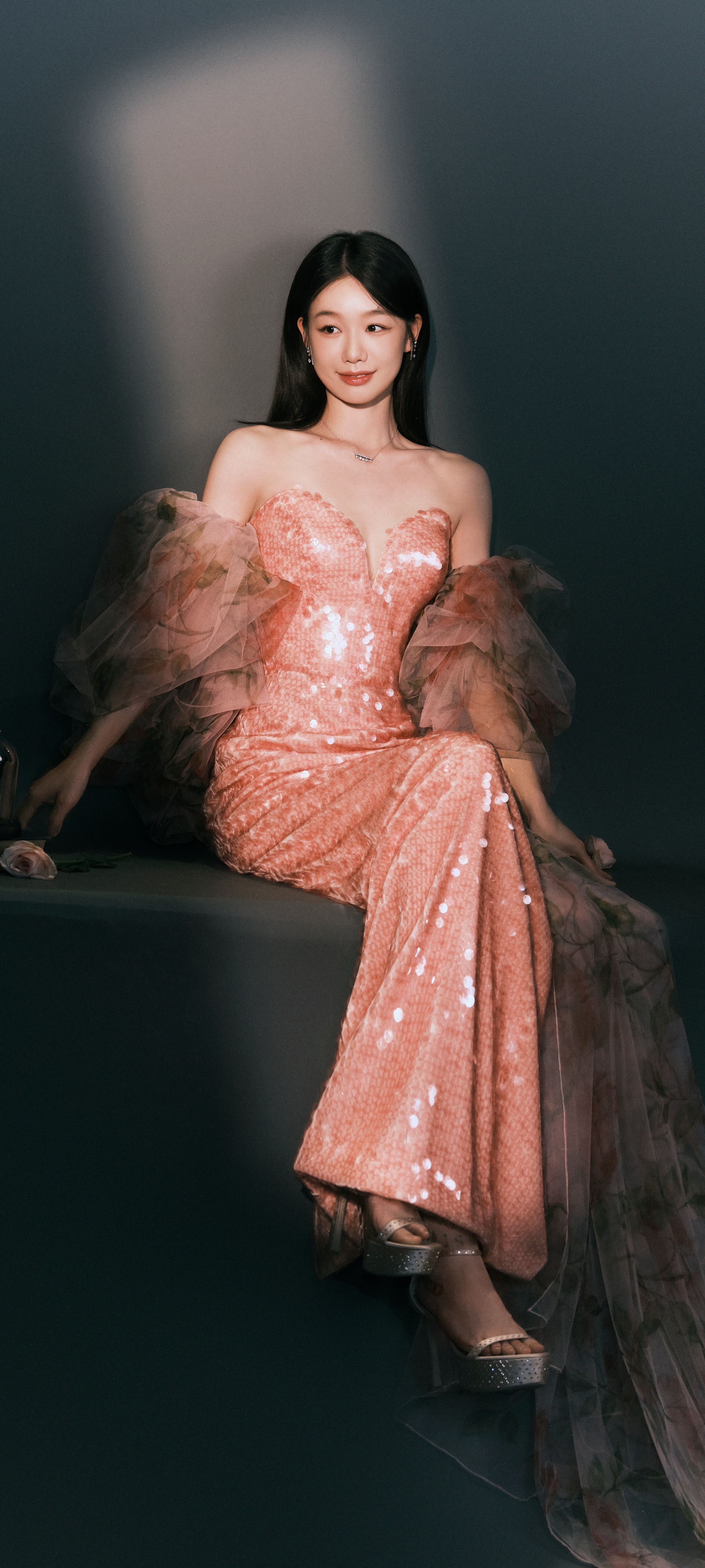 徐梦洁淡粉抹胸礼裙:自由摇曳, 如花在野,恣意绽放。徐梦洁