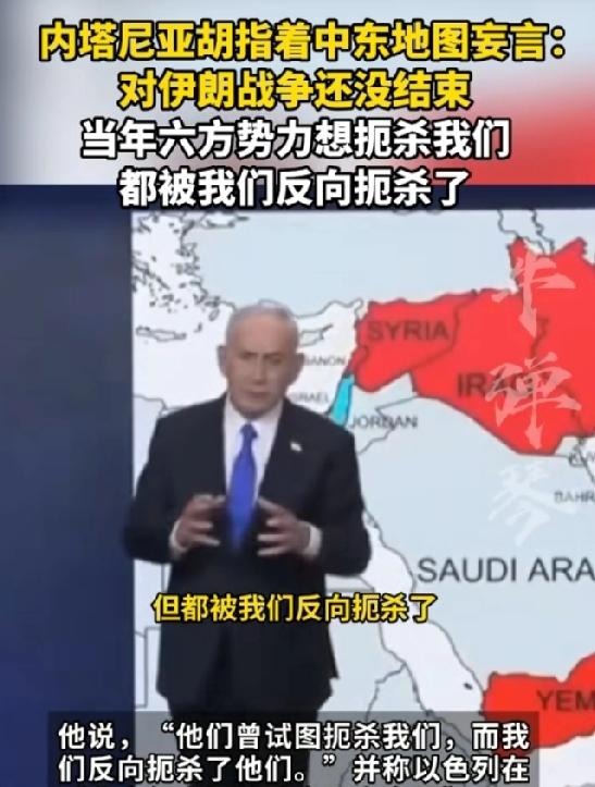 内塔尼亚胡指着中东地图妄言:对伊朗的战争还没结束