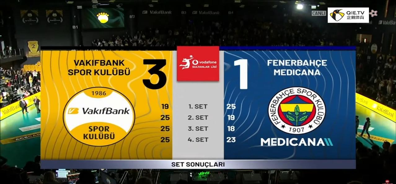 在今天凌晨结束的土超女排决赛第三回合的比赛中,拥有球星博斯科维奇和马尔科娃的瓦基弗银行以3:1战胜瓦尔加斯领衔的费内巴切,在五场三胜制中瓦基弗以2:1取得领先优势。这场比赛一开始费内依靠瓦尔加斯的进攻和发球以25:19拿下,第二局开始瓦基弗三个边攻手都有不错发挥,博斯科维奇和马尔科娃进攻犀利,而另一名边攻手卡绍特的发球也屡屡得分,反观费内这边瓦尔加斯的进攻能力受阻后心态也发生变化,发球的失误渐渐增多,另一名球队主要得分手小彩娃表现也不理想,这样此消彼长,胜利的天平自然导倒向瓦基弗银行这边,瓦基弗银行以25:19、25:18、25:23连扳三局,以3:1逆转战胜费内巴切。
