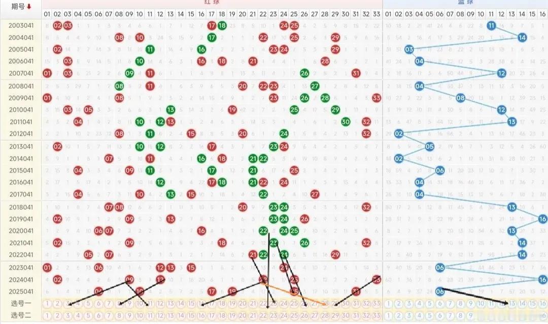 双色球26041期前区走势图 历史同期走势图 分析数据