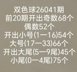 双色球26041期龙头凤尾分析26040期双色球龙头、凤尾分别开出了0路号03