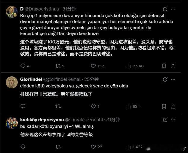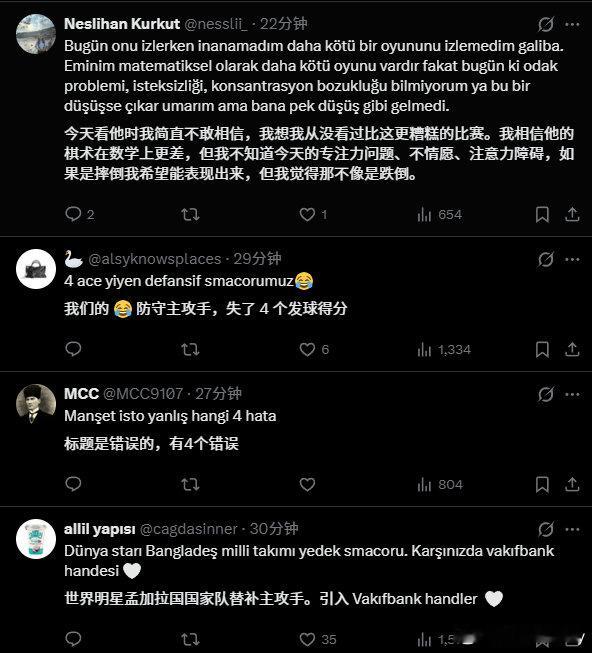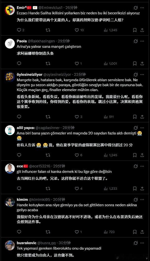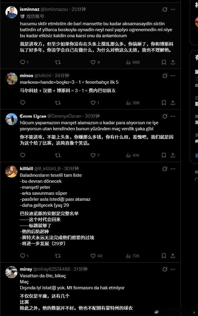 巴拉丁今晚只拿到4分,比赛已结束,短短时间当中,土耳其球迷对她的评论已经接近300条🔥,批评声一片。