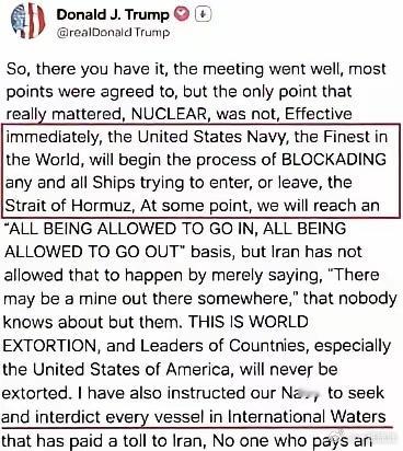 特朗普这是要逼中国“动手”吗?昨日,特朗普在媒体发帖说;将在“霍尔木兹”海峡出来的他国船只要收取“过路费”。他这是要“疯了”吗?伊朗在里面收一道费,然后美国又在外面又收一道费,这是要把世界其他国家给“玩死”的节奏呀?其他国家咱也不说,就说咱中国每天就会有很多的“油轮与货轮”从霍尔木兹海峡进出,难不成你们也要中国向你们“缴费”???我敢说,如果美国真的这么做,咱中国绝对会派咱们的军舰在霍尔木兹海峡护航,因为中国不会让九十年代时的“银河号”事件再次重现……要是中国军舰来护航,那你美国还敢向中国收费吗?再问一次美国,你们敢吗??????看来美国真的是不知道自己“几斤几两”了……