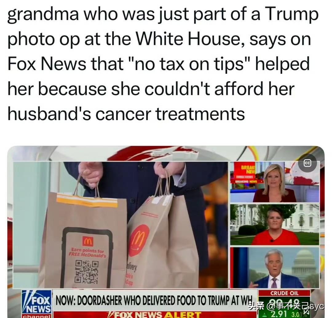 外卖“奶奶”到白宫送麦当劳,总统亲自接收、亲切交谈。