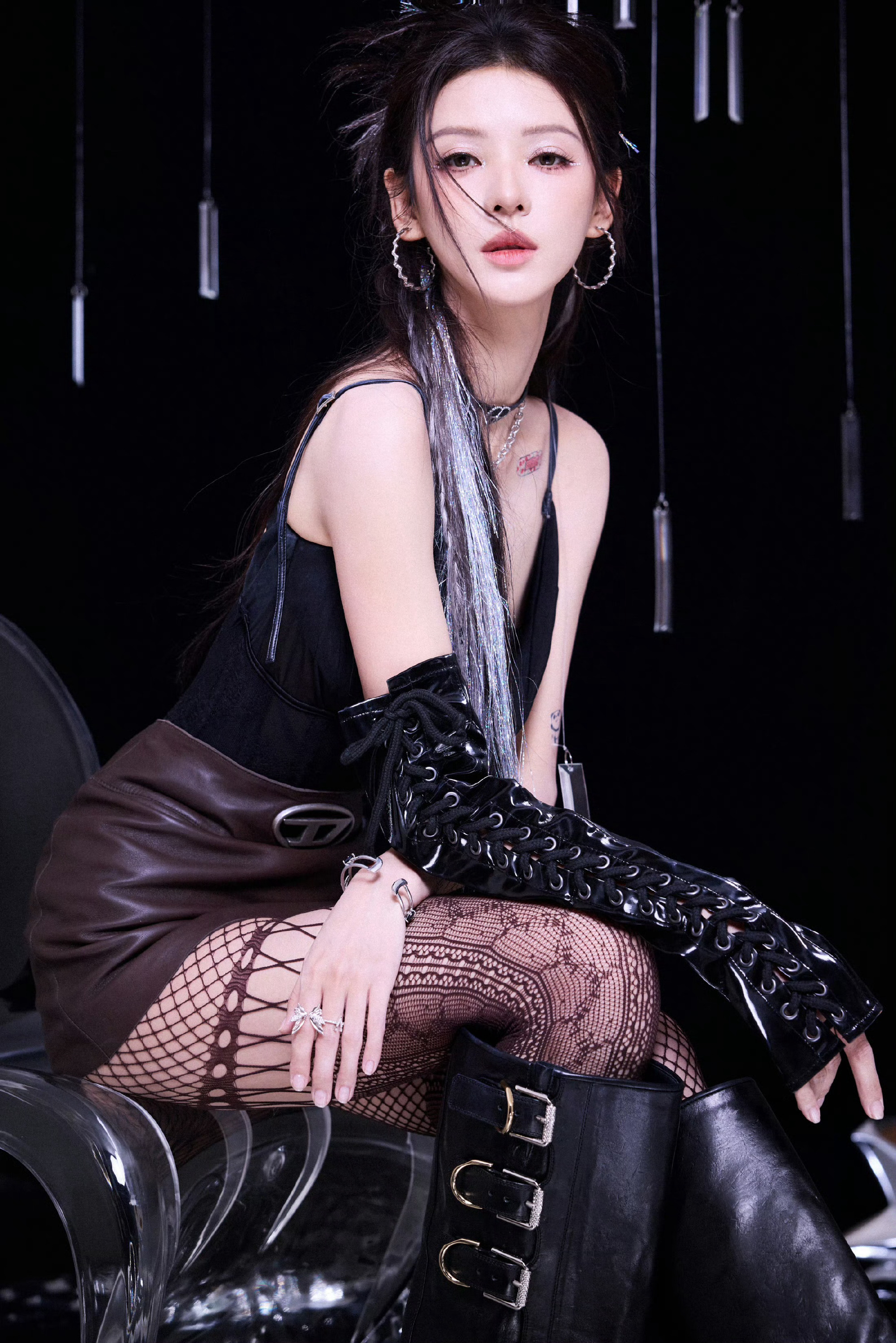 张予曦,魅力穿搭写真,这一套丝袜妆造实在好酷。张予曦