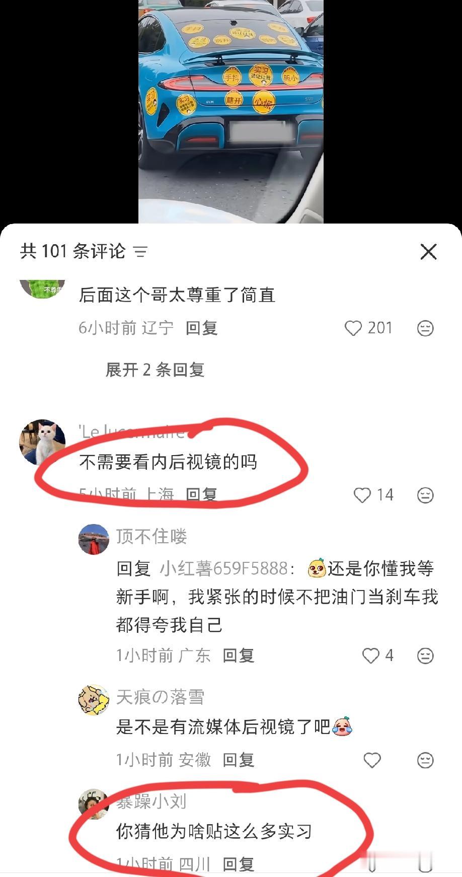 立刻有网友做出了回答:实话说,我现在实习开车四个月,就没看过一次后视镜!