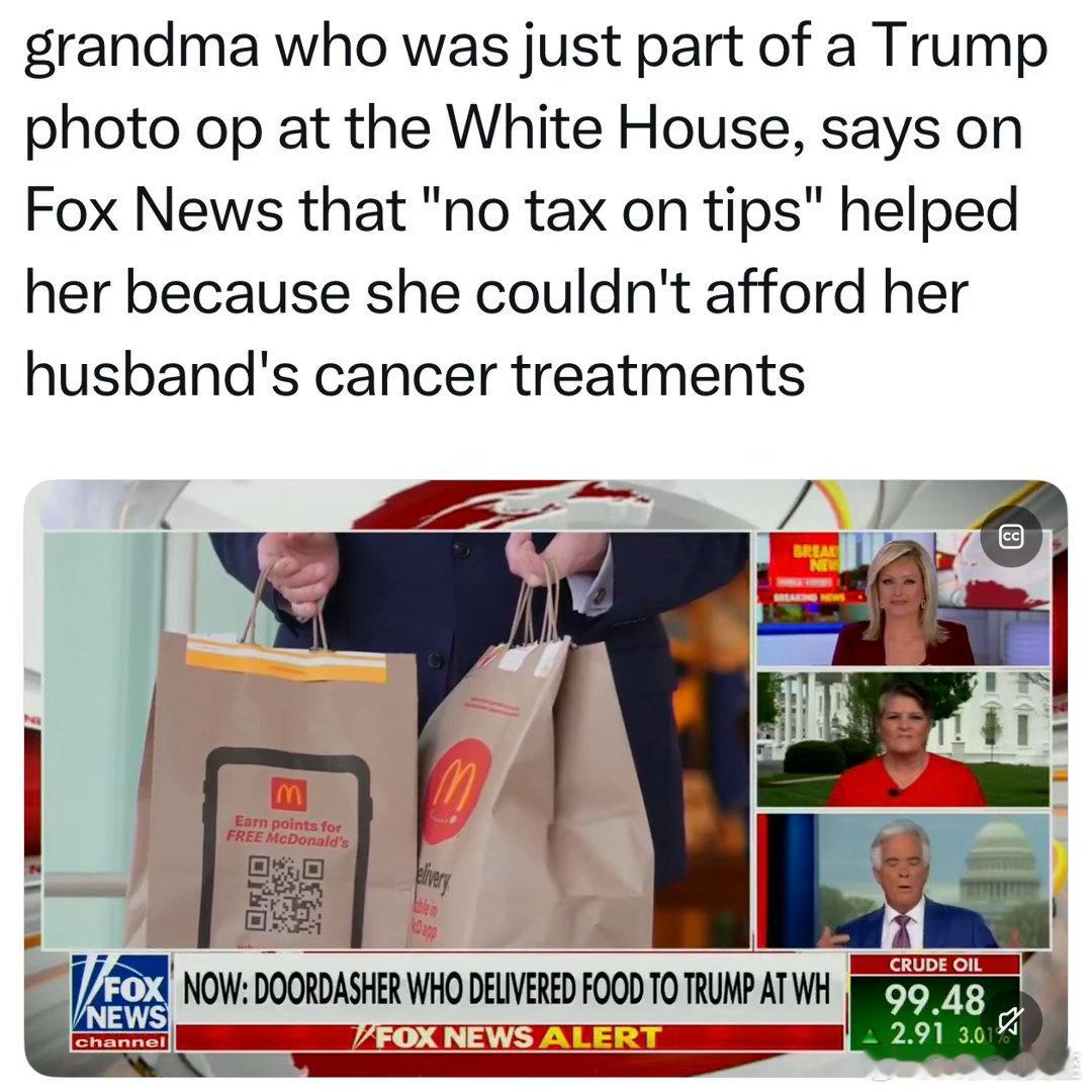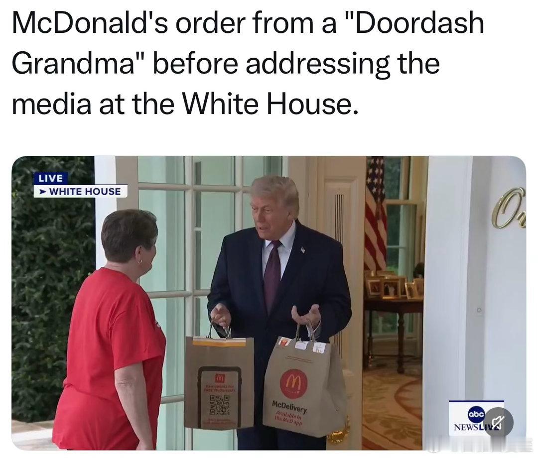 外卖“奶奶”到白宫送麦当劳,总统亲自接待、亲切交谈、并支付小费事后接受采访:总统